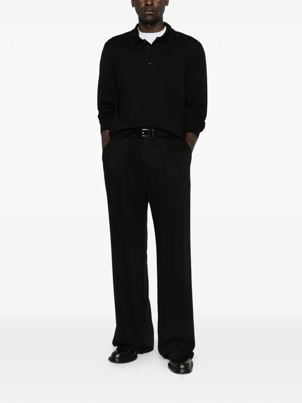 black button closure polo collar long sleeves