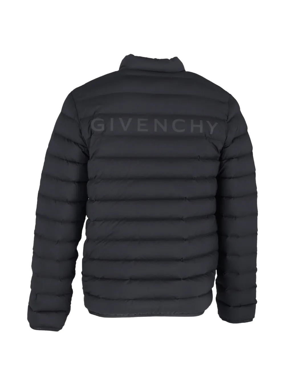 black padded construction rear logo print high neck long sleeves front zip fastening two side slit pockets Condition: UNWORN, WITH TAGS. This piece is previously owned but remains unworn and in its original condition. Comes complete with its original tags attached.