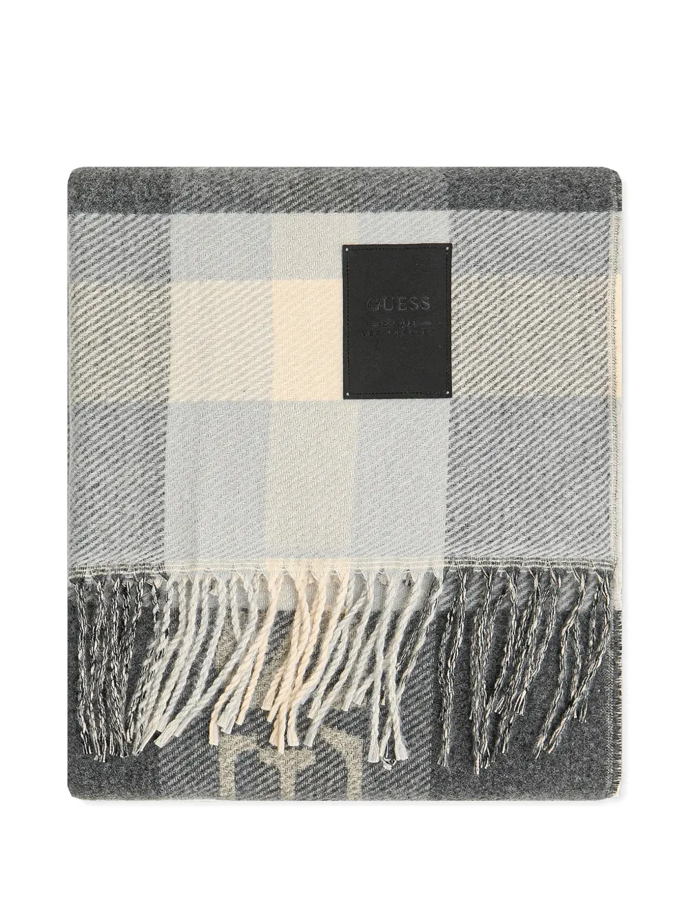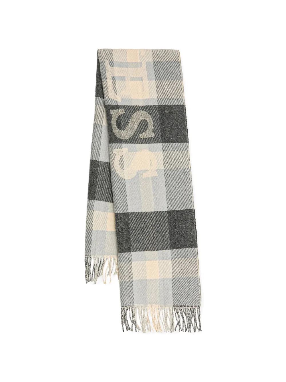 grey check pattern logo patch to the front intarsia-knit logo fringed edge rectangular shape