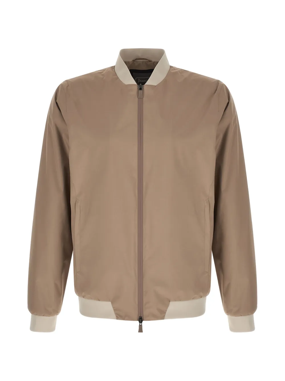 light brown contrast details high neck zip closure cuffed long sleeves side pockets