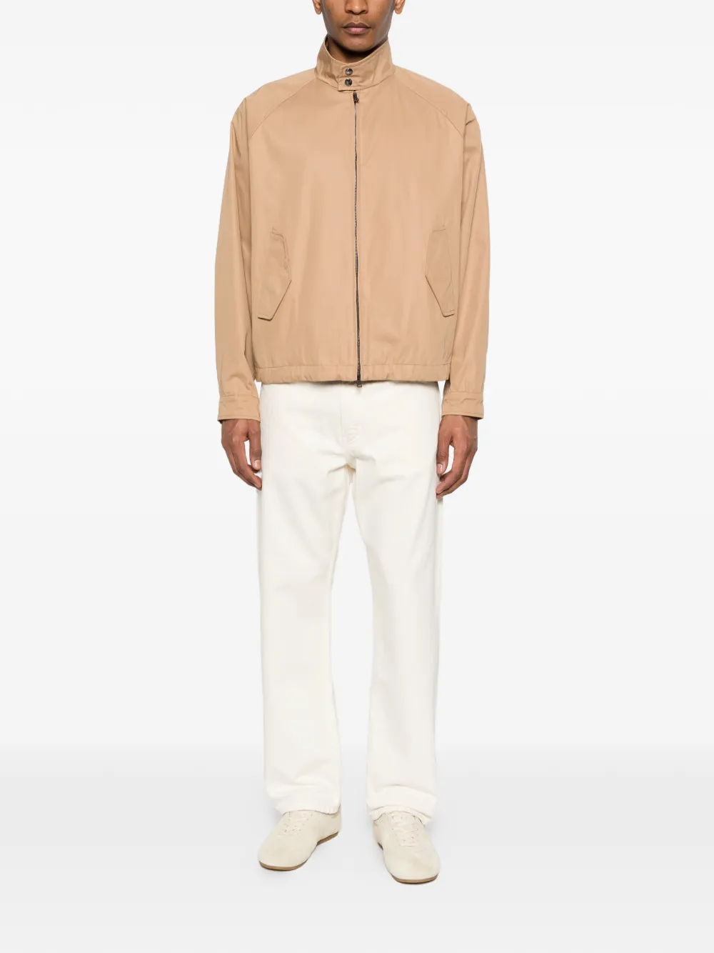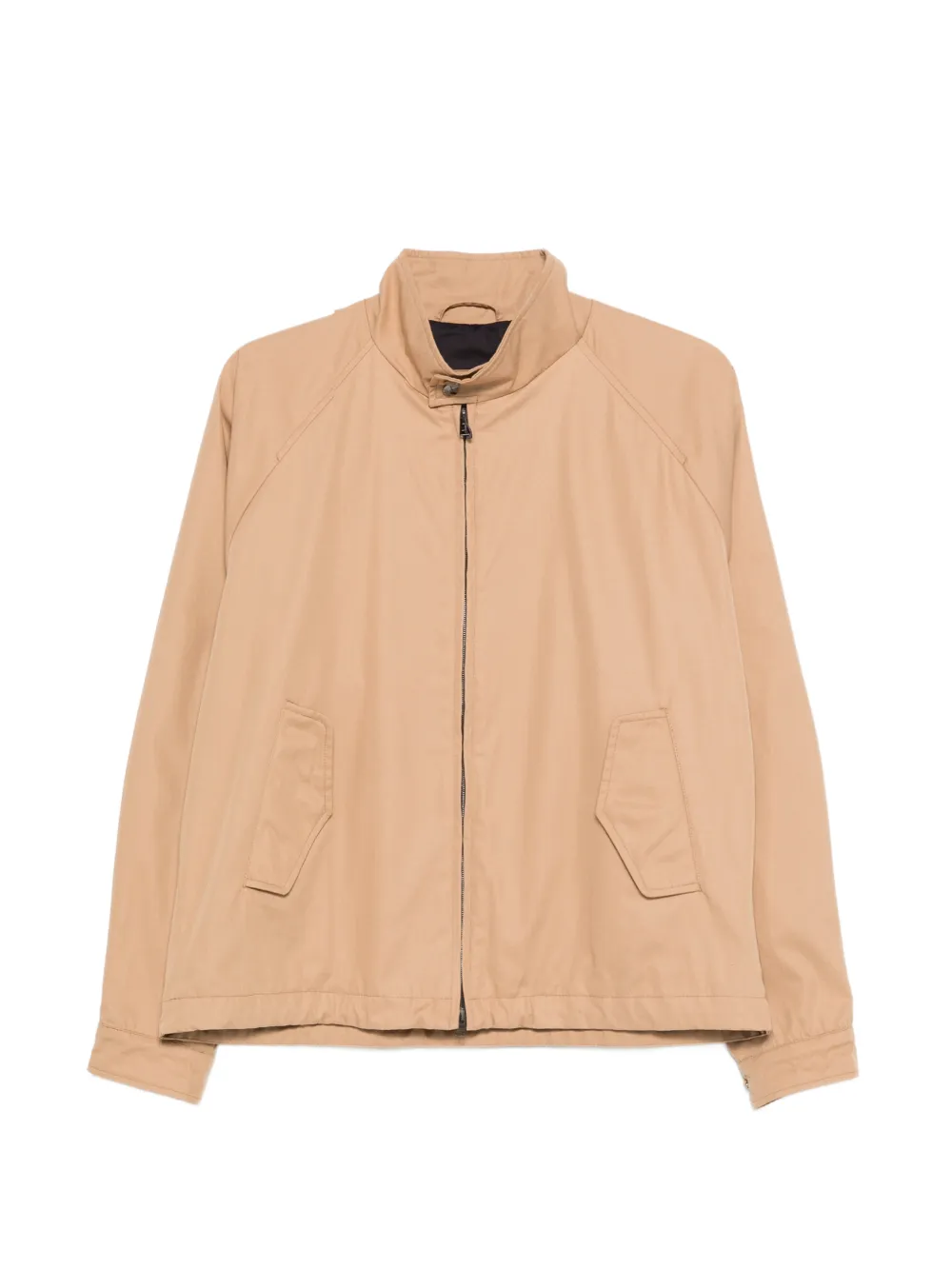 light brown zip fastening high neck welt pocket long sleeves buttoned cuffs