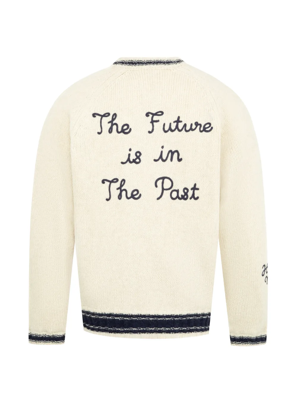 white ribbed trims zip fastening front pockets crew neck