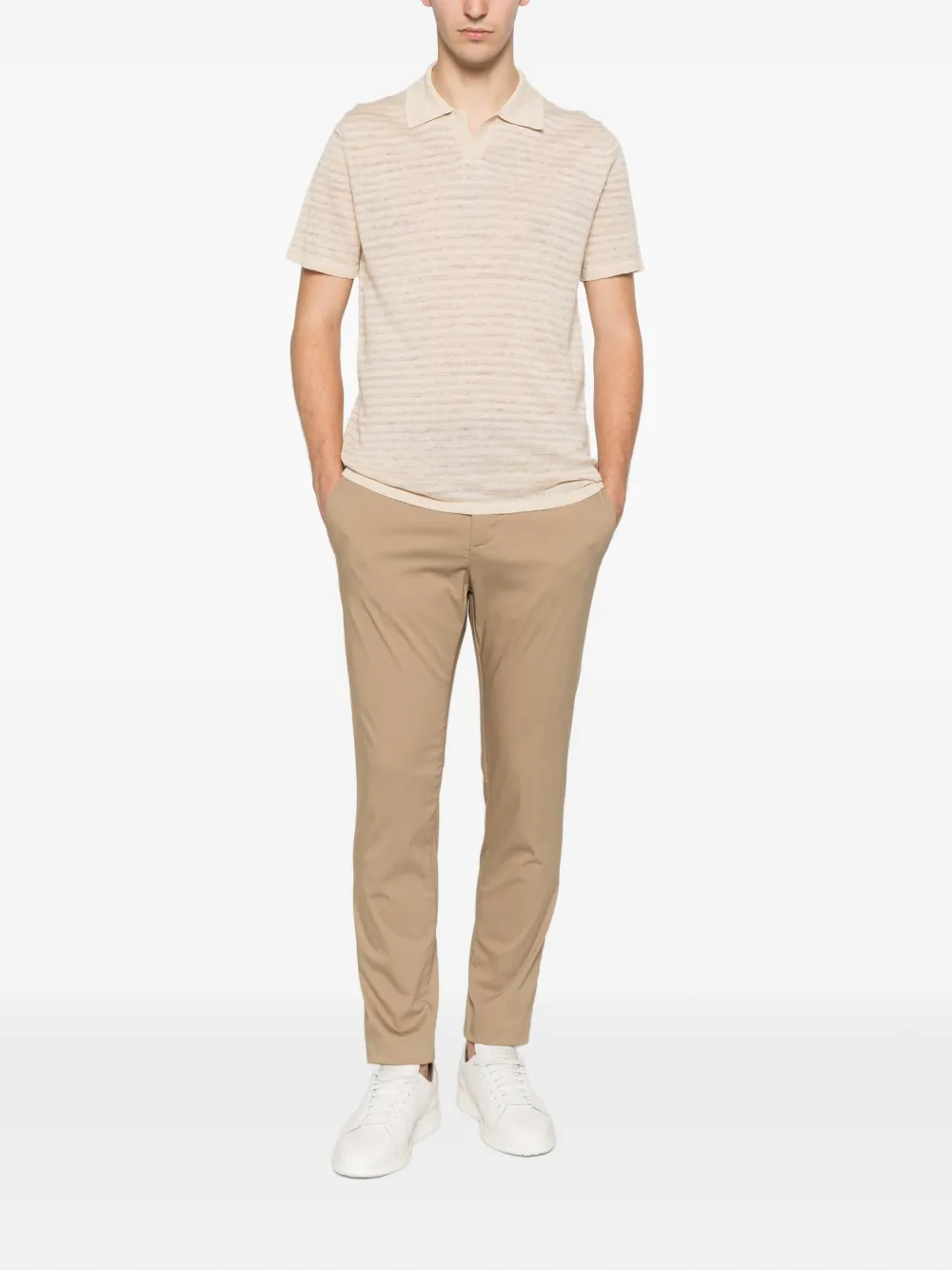 beige belt loops button fastening logo patch partial elasticated
