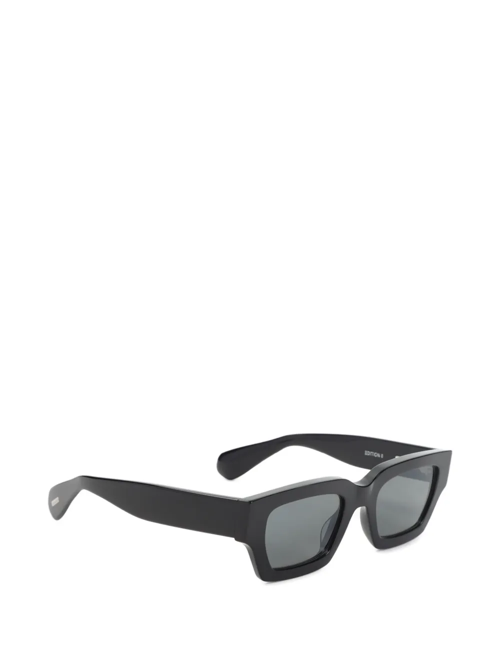 black acetate rectangle frame tinted lenses nose pads edition lettering These glasses come with a protective case.