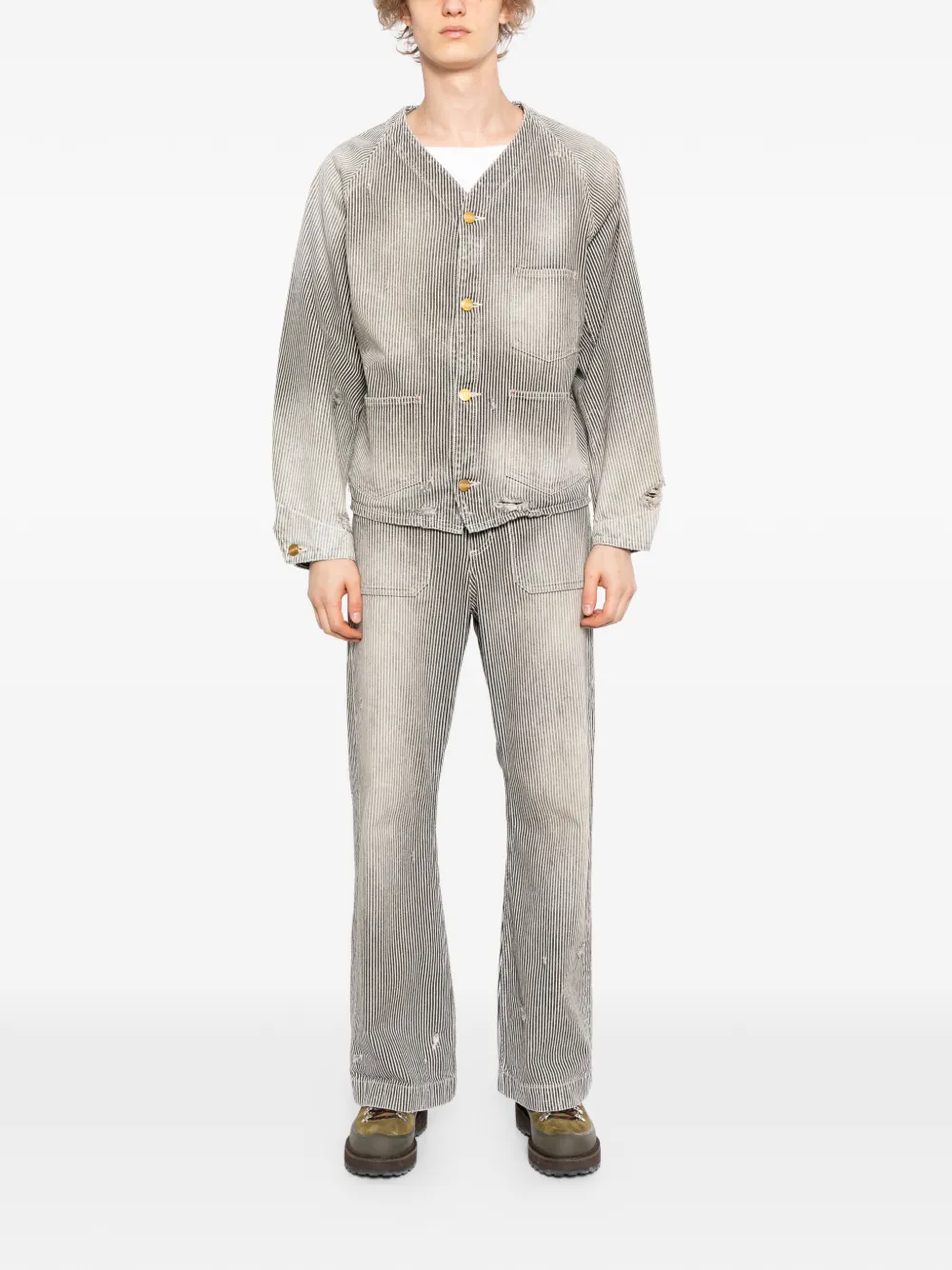 grey front button fastening three front patch pockets buttoned cuffs long sleeves