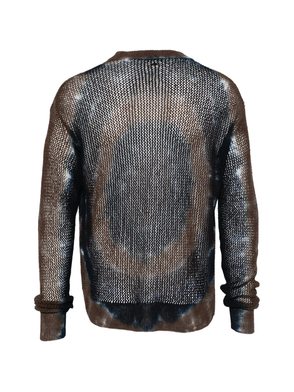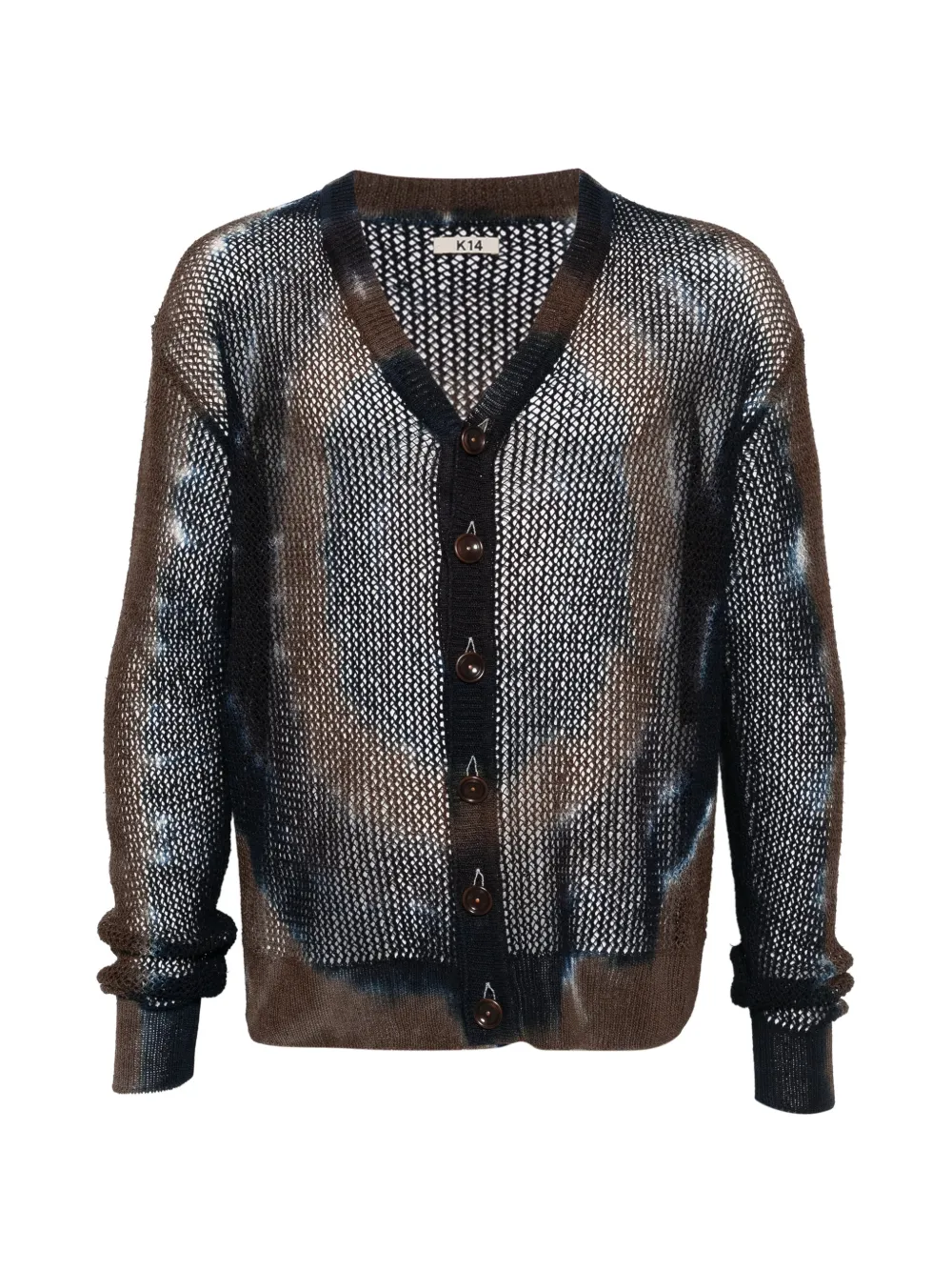 brown/multicolor mesh knit button fastening V-neck long sleeves ribbed cuffs