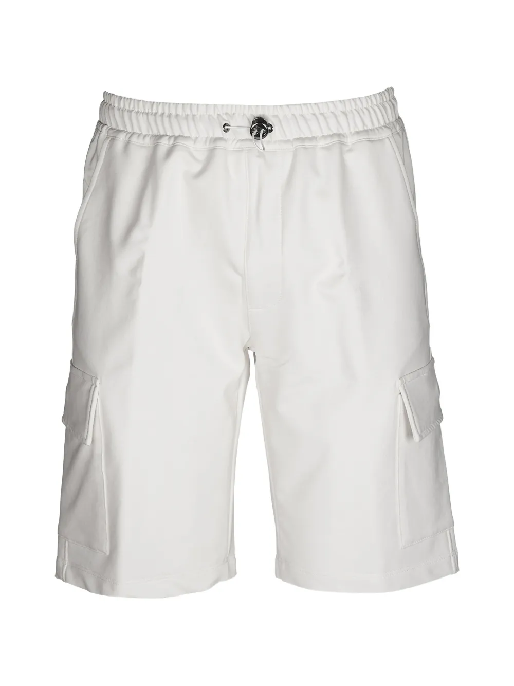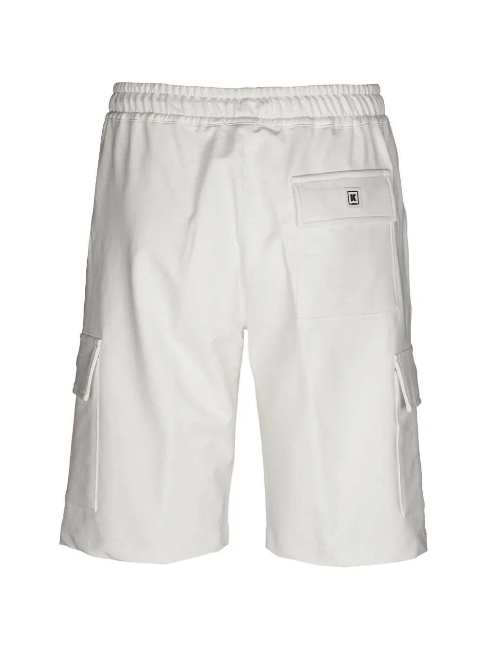 white drawstring fastening elasticated waistband back flap pocket side flap pockets