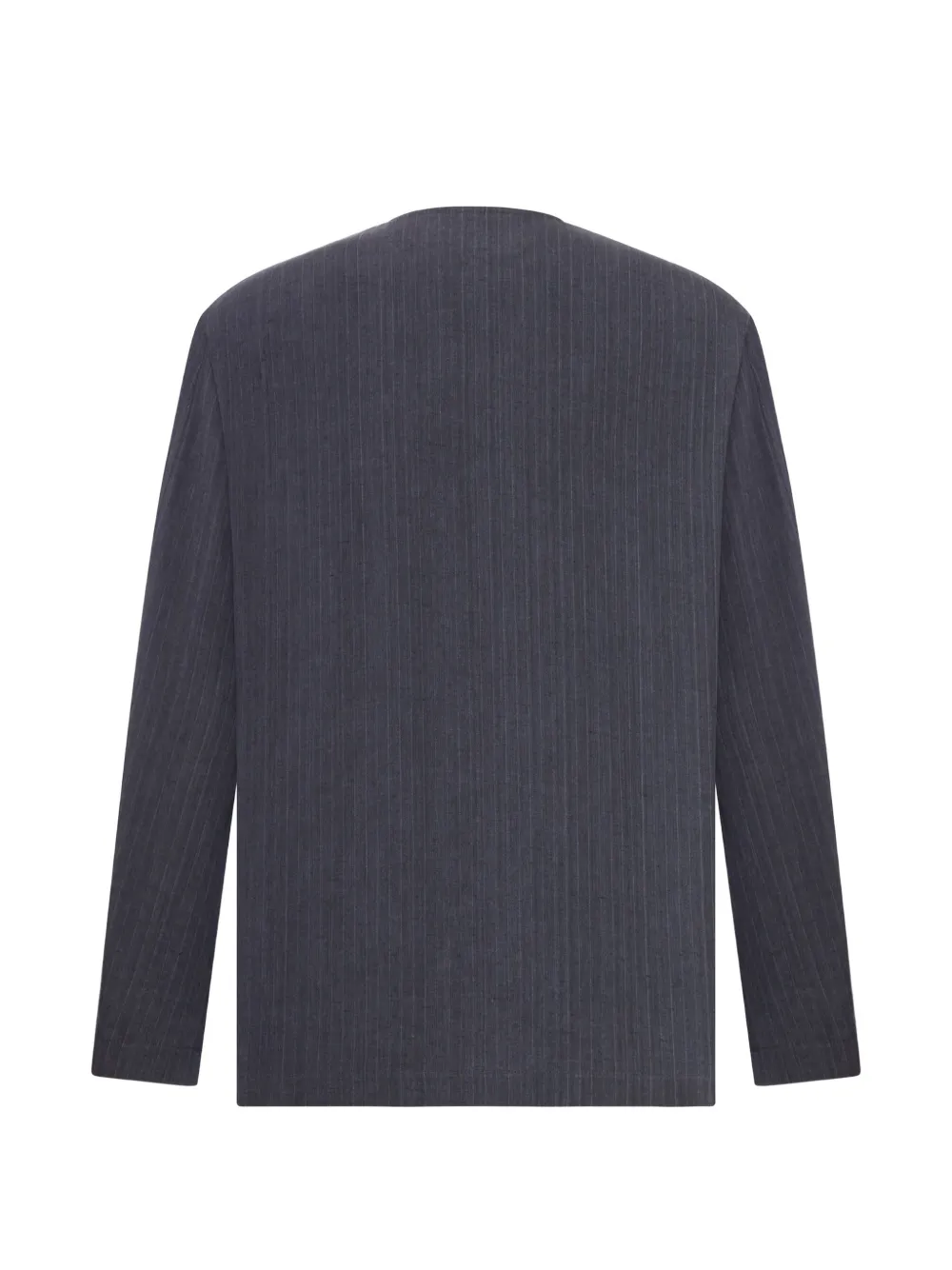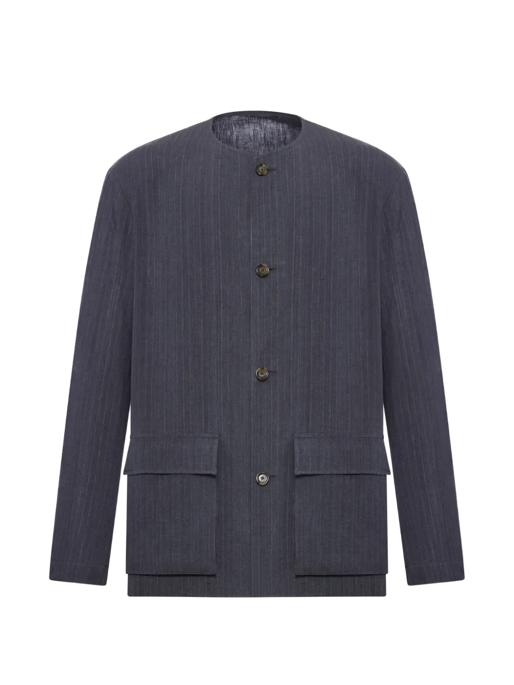 blue pinstripe pattern collarless button fastening front patch pockets