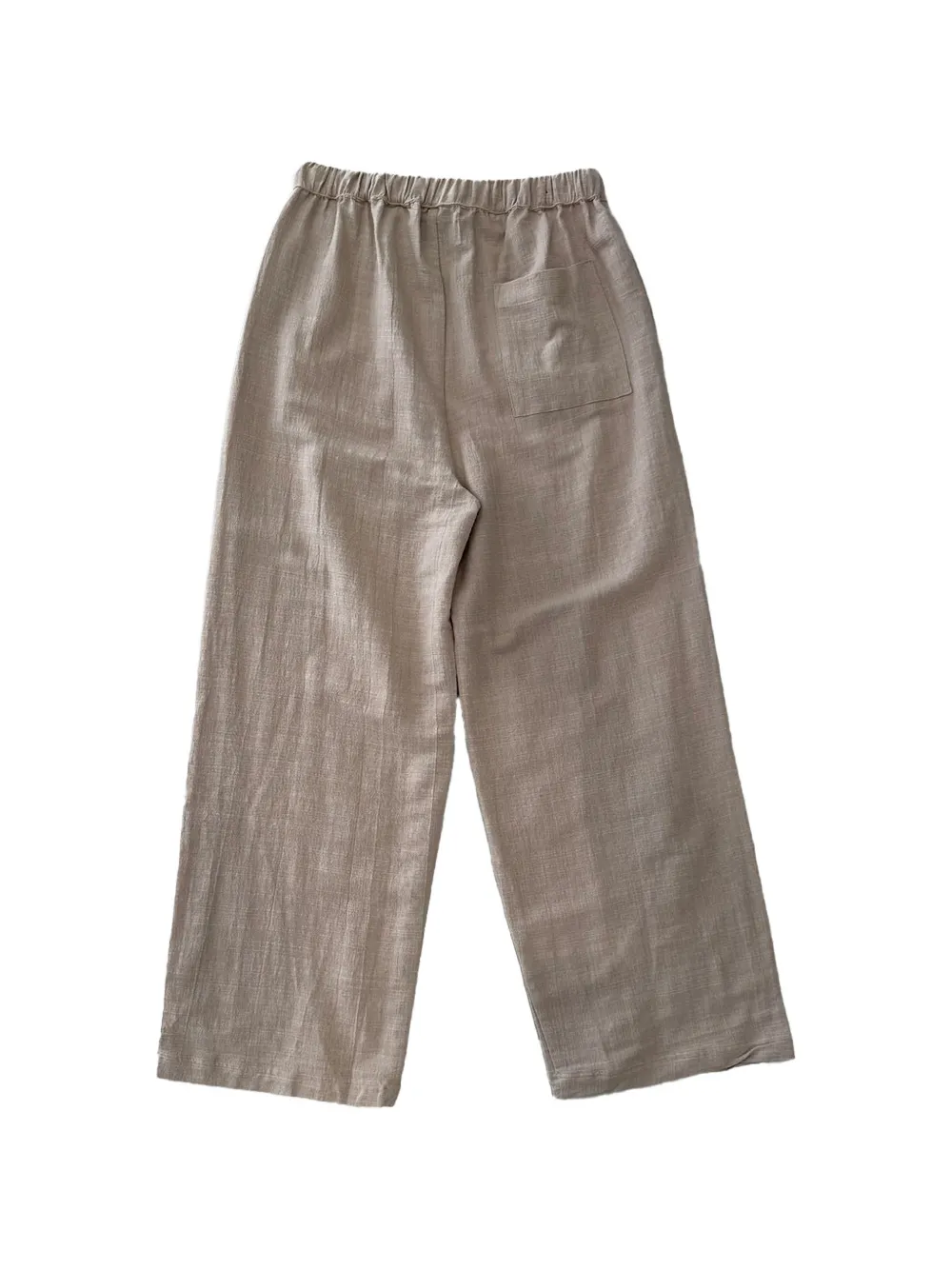 beige elasticated waistband drawstring fastening wide leg back patch pocket