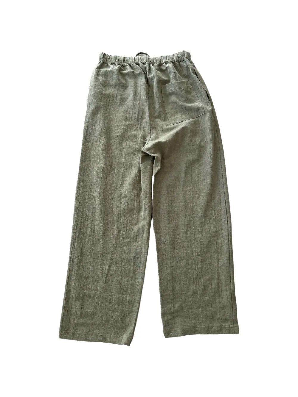 sage green drawstring fastening back pocket wide leg elasticated waistband