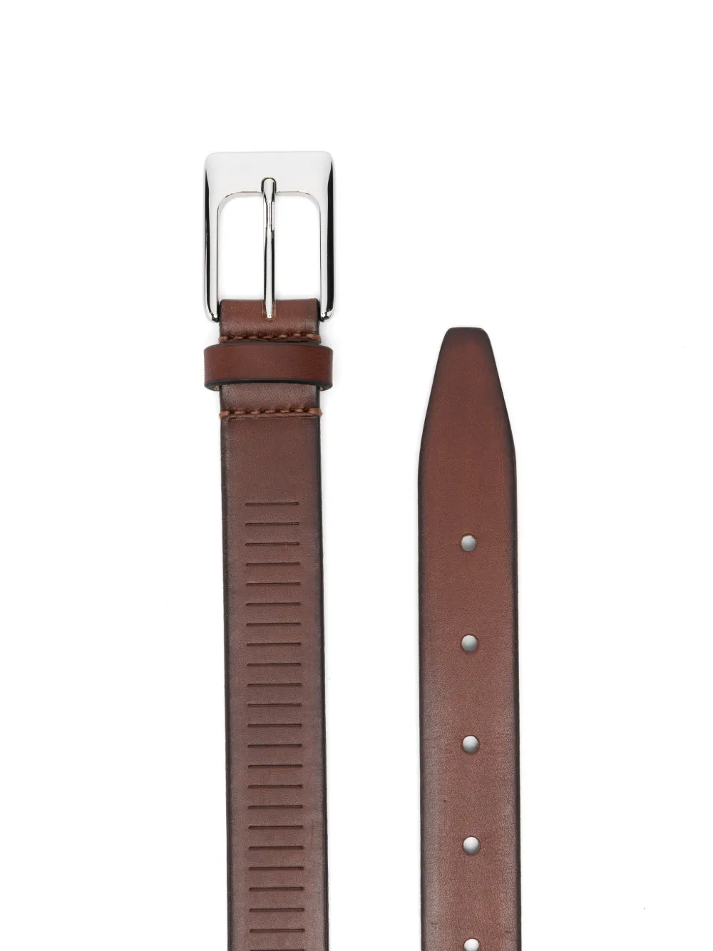 marrón pecana hebilla plateada líneas verticales Aunque es nuevo y sin uso, debido al proceso de recuperación y curtido especializado que utiliza Lemaire en sus artículos de cuero, su textura puede contar con signos de la veta, la suavidad y las arrugas naturales del material.