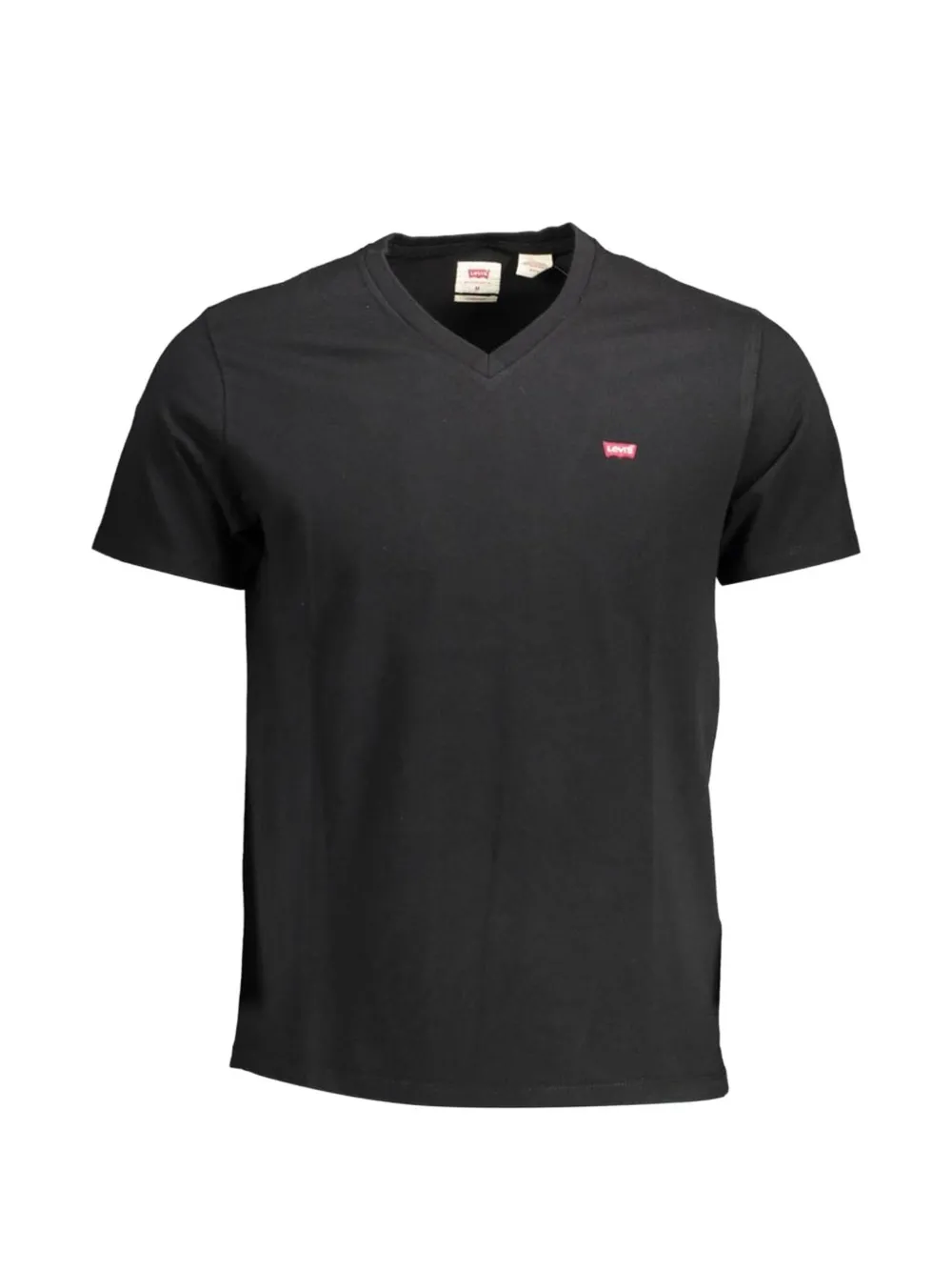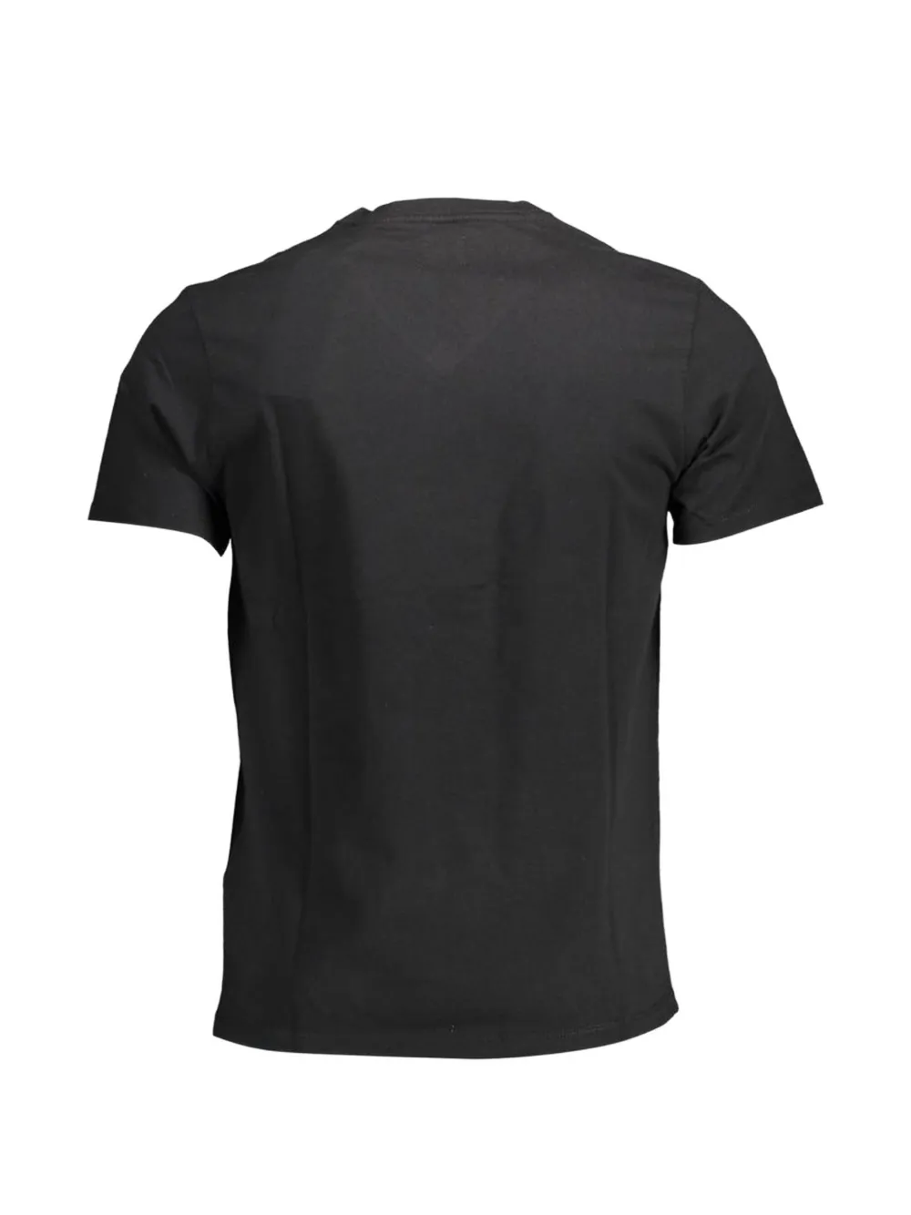 black cotton V-neck short sleeves logo patch at the chest straight hem