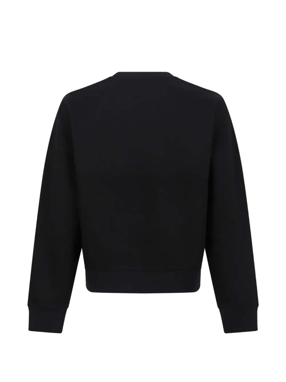 black jersey texture logo-print to the front crew neck long sleeves ribbed cuffs ribbed hem