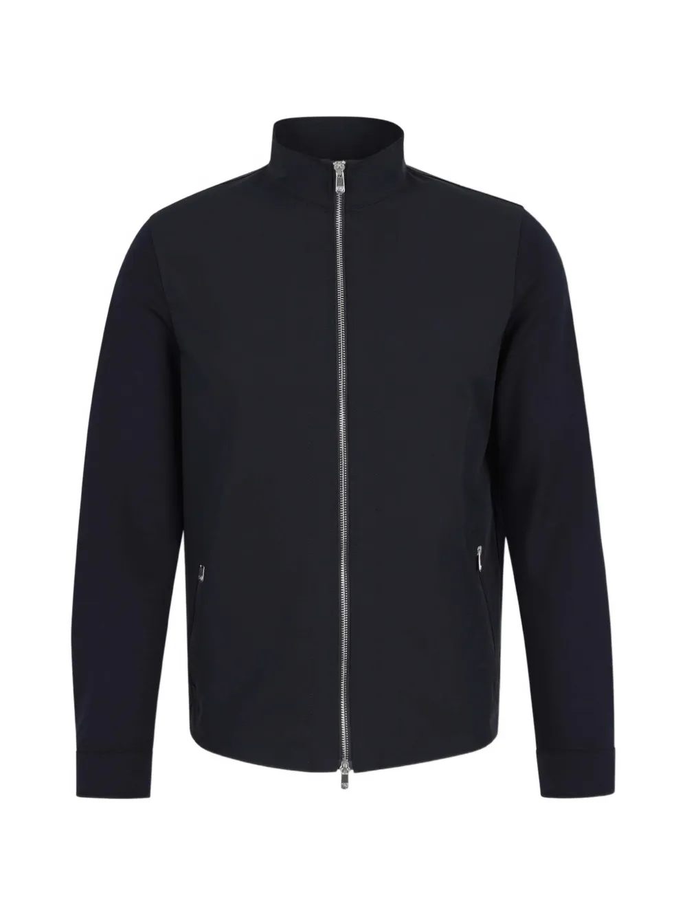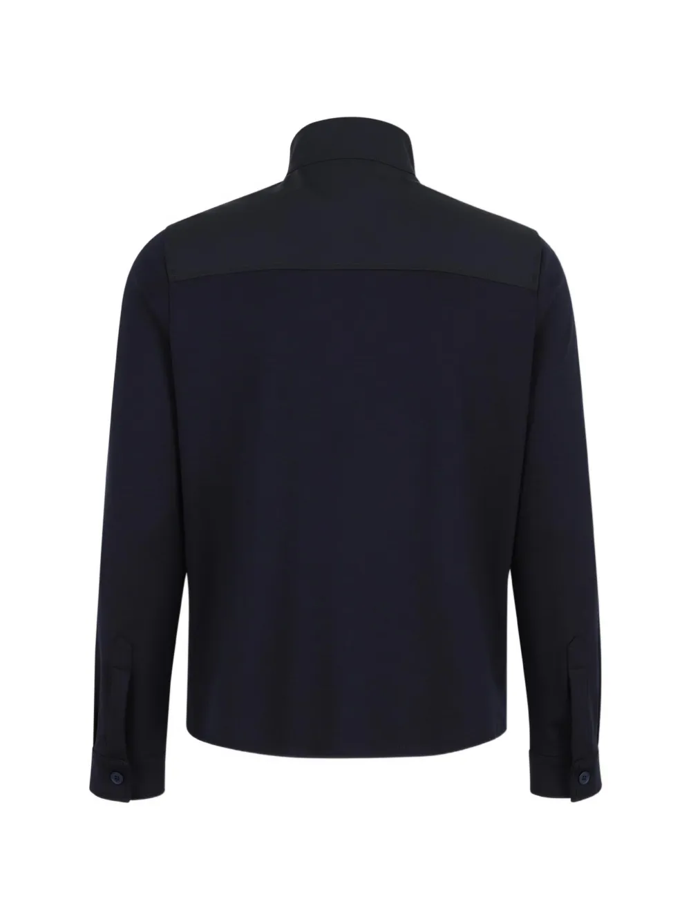 blue tonal panels zip fastening long sleeves stand-up collar