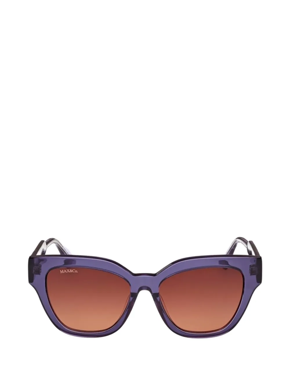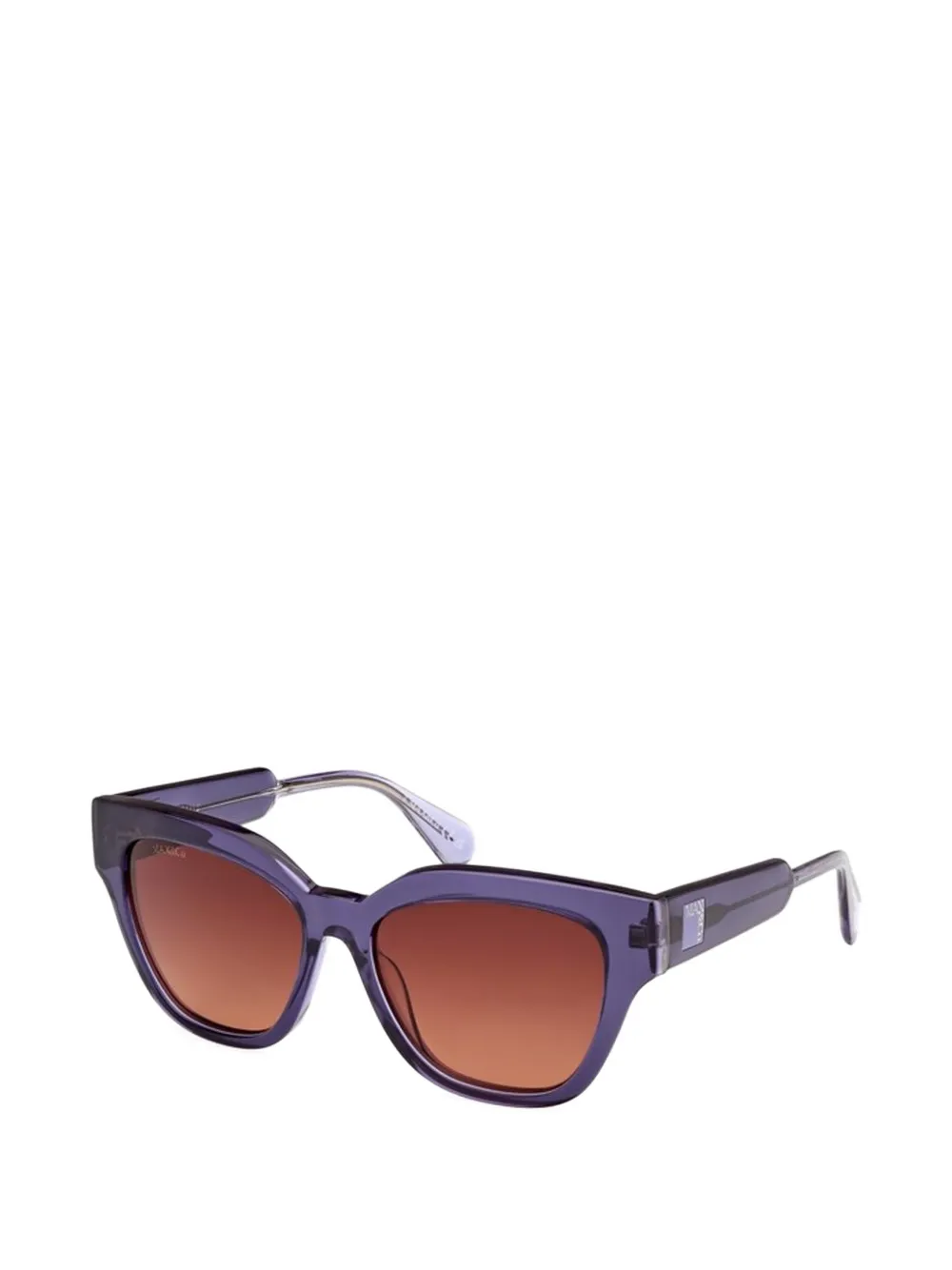 violet cat-eye frame gradient lenses logo plaque at the arms curved tips brown lenses These glasses come with a protective case.