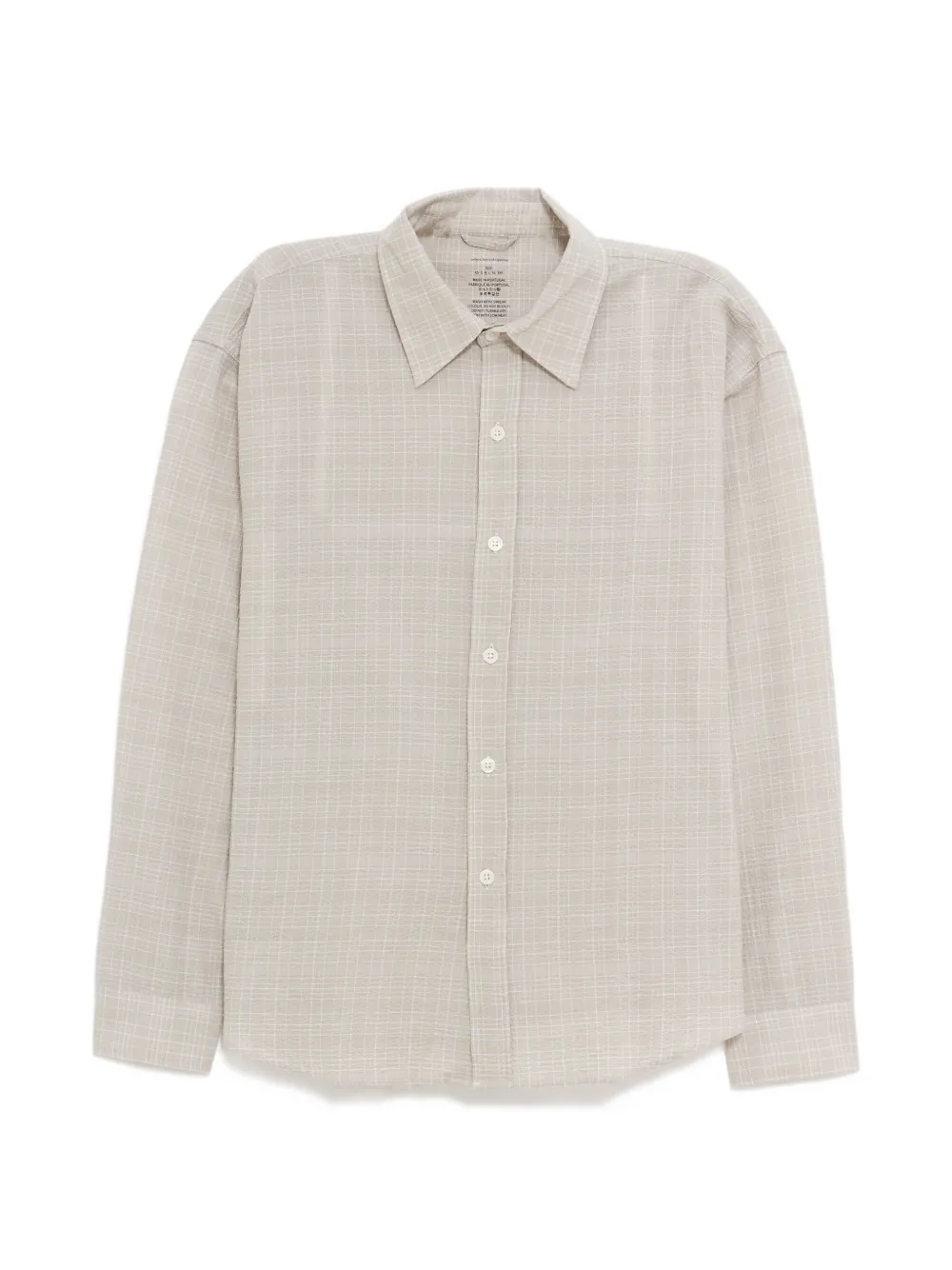 ivory check pattern button fastening long sleeves buttoned cuffs classic collar