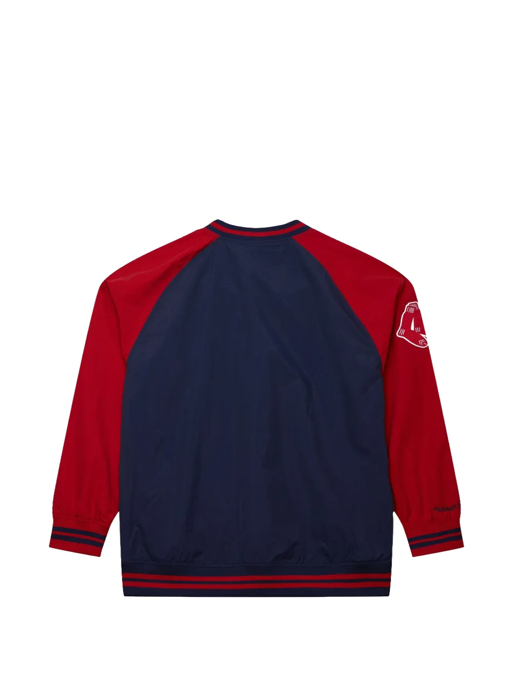 navy blue long sleeves logo v-neck ribbed hem and cuffs
