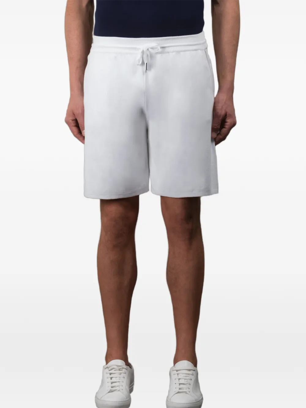 white drawstring front pockets ribbed waistband contrasting trim