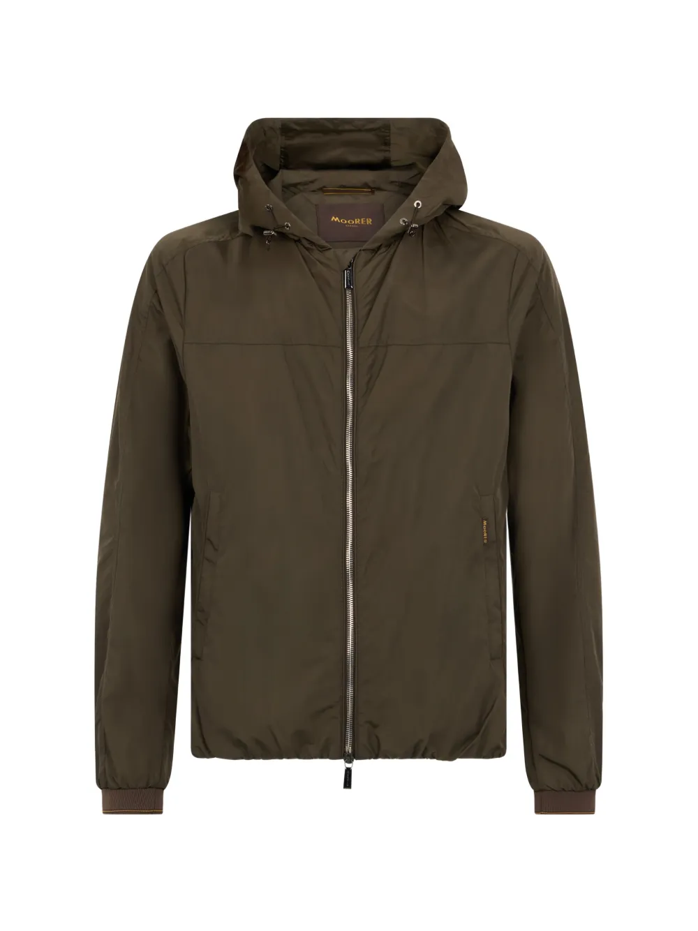 brown elasticated hem and cuffs zip fastening hooded long sleeves
