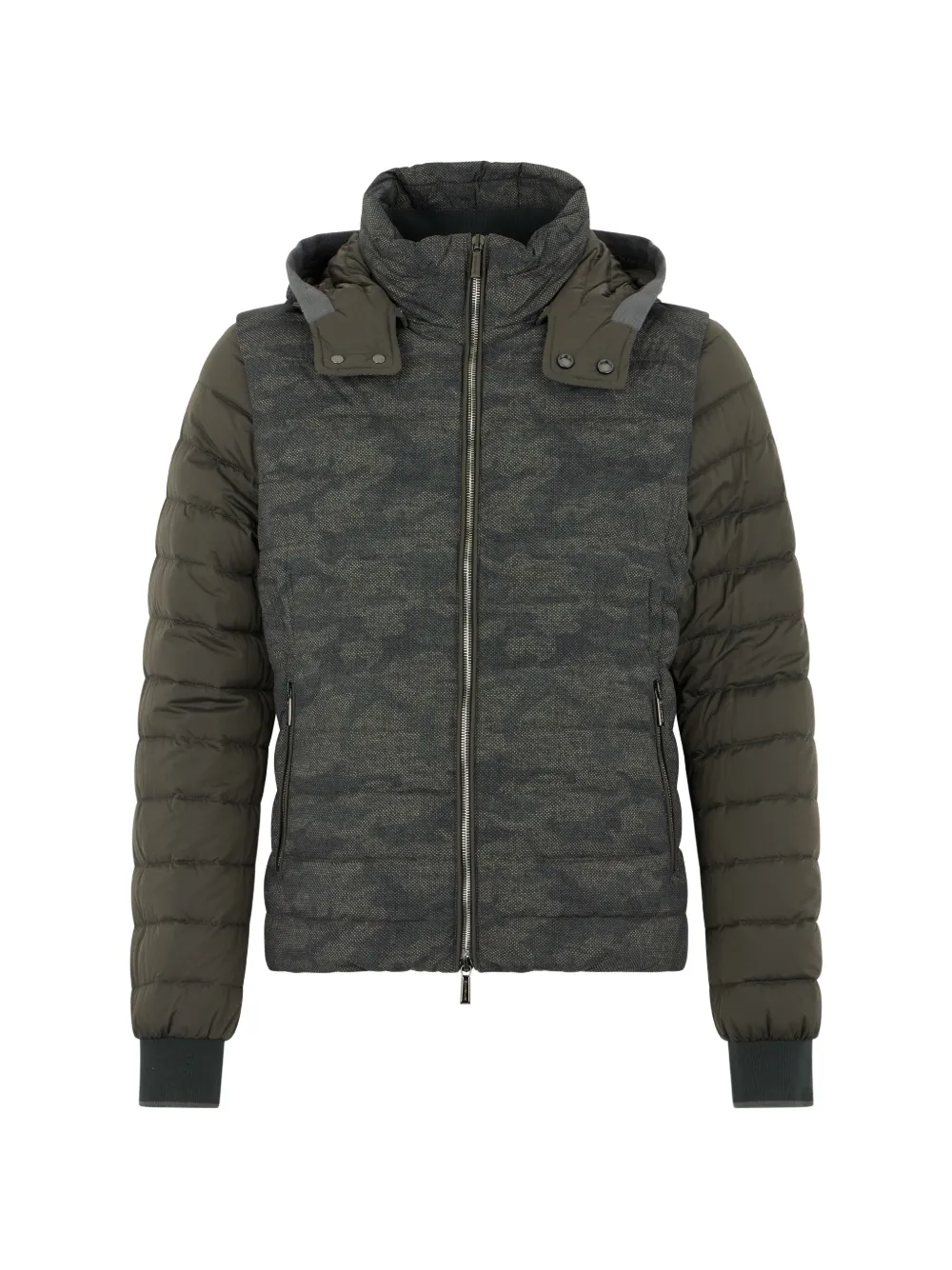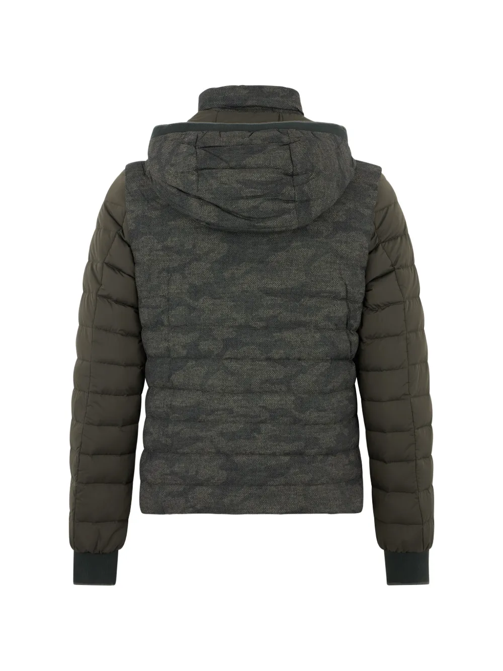 green camouflage print padded design zip fastening high collar long sleeves