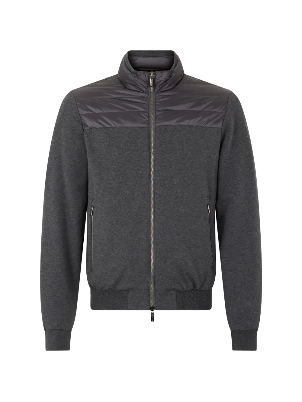 dark grey high collar zip closure long sleeves padded design front zip pockets