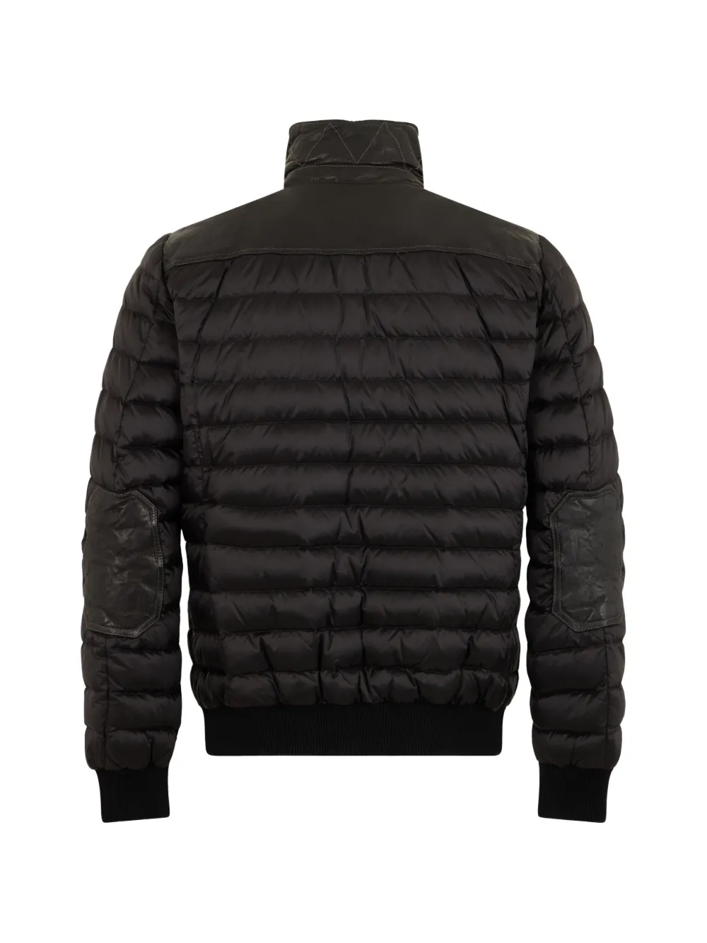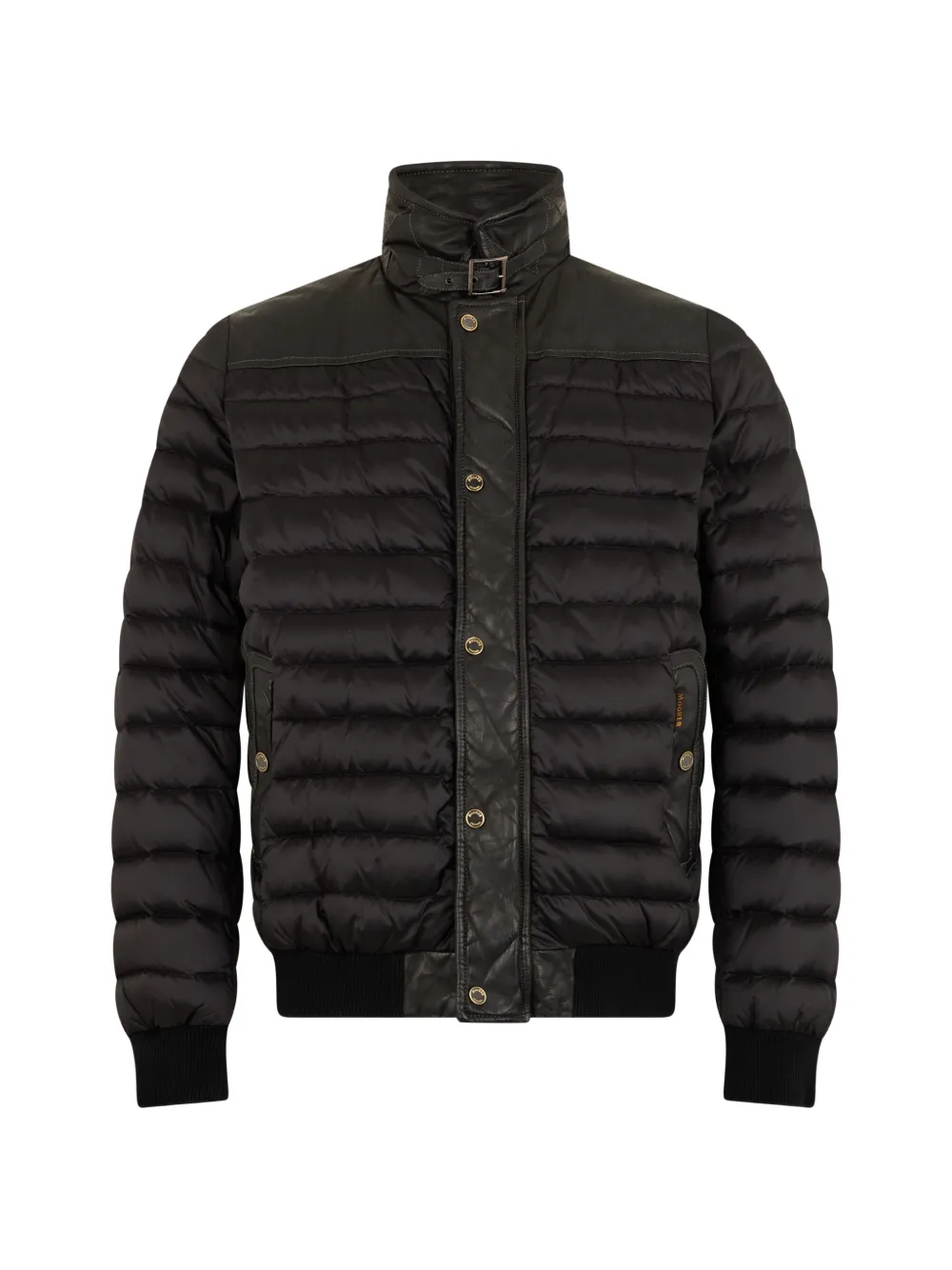 black high collar button fastening long sleeves ribbed hem leather inserts