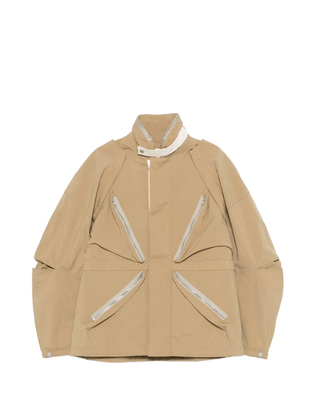 beige zip fastening stand-up collar front zip fastening long sleeves drawcord hem