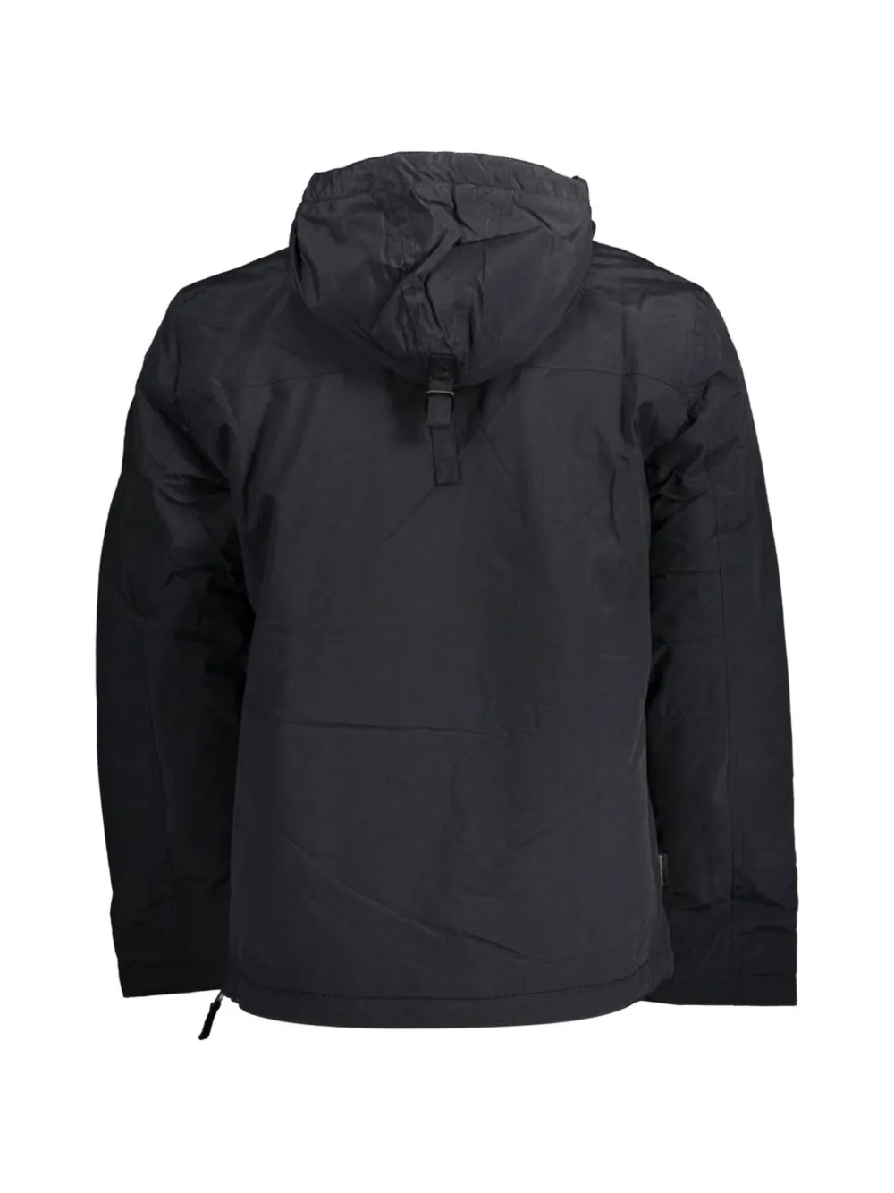 black half-zip fastening drawstring hood front kangaroo pocket logo patch to the front Norwegian flag patch to the front long sleeves straight hem waterproof fabric