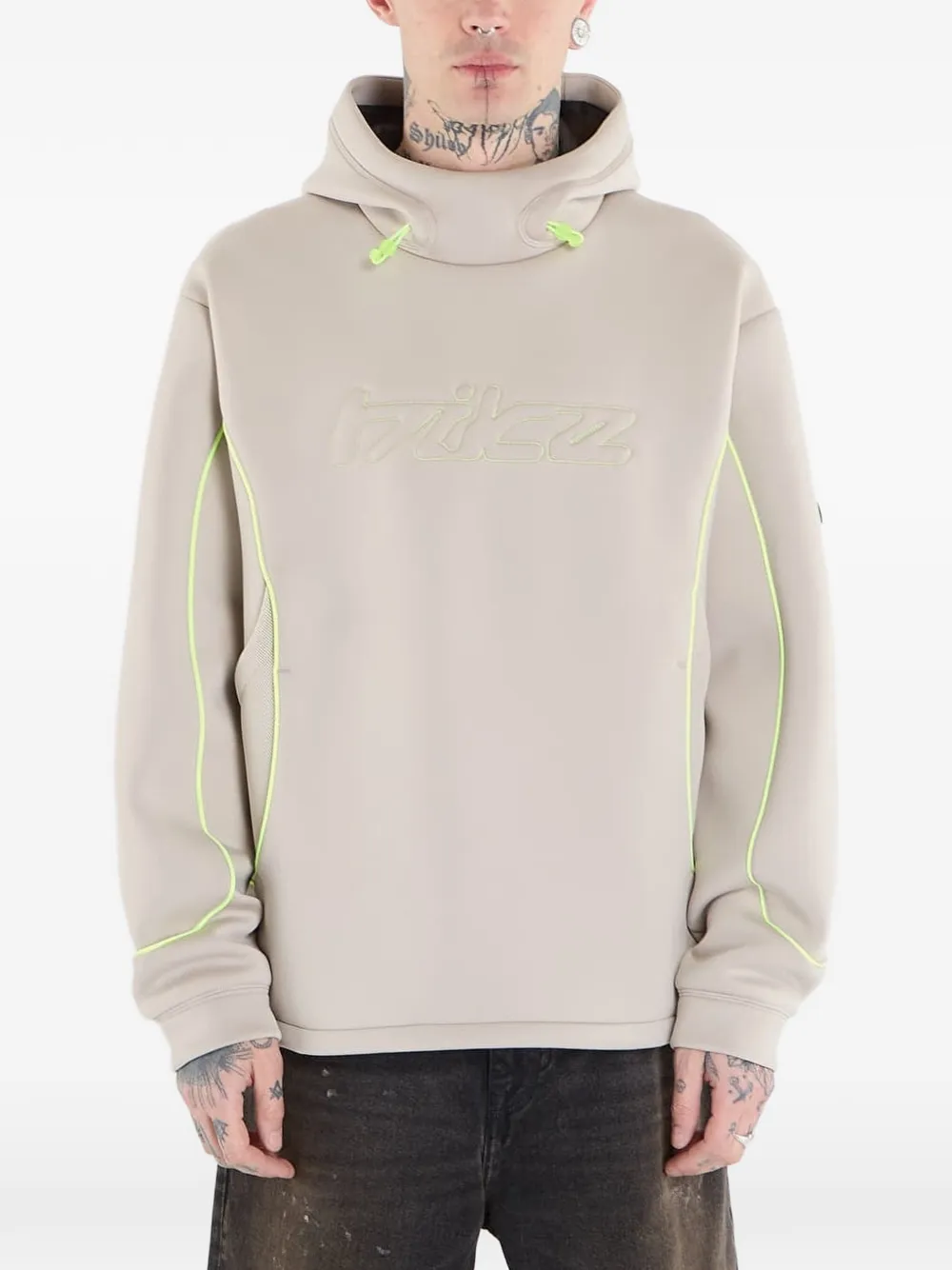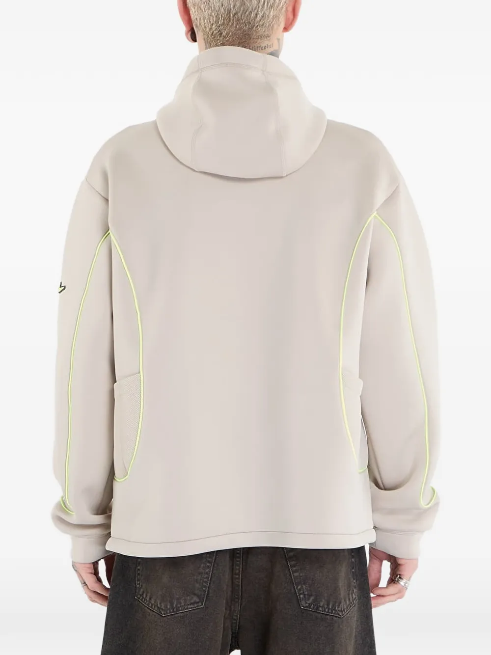 beige mesh detail contrast trim logo detail drawstring hood