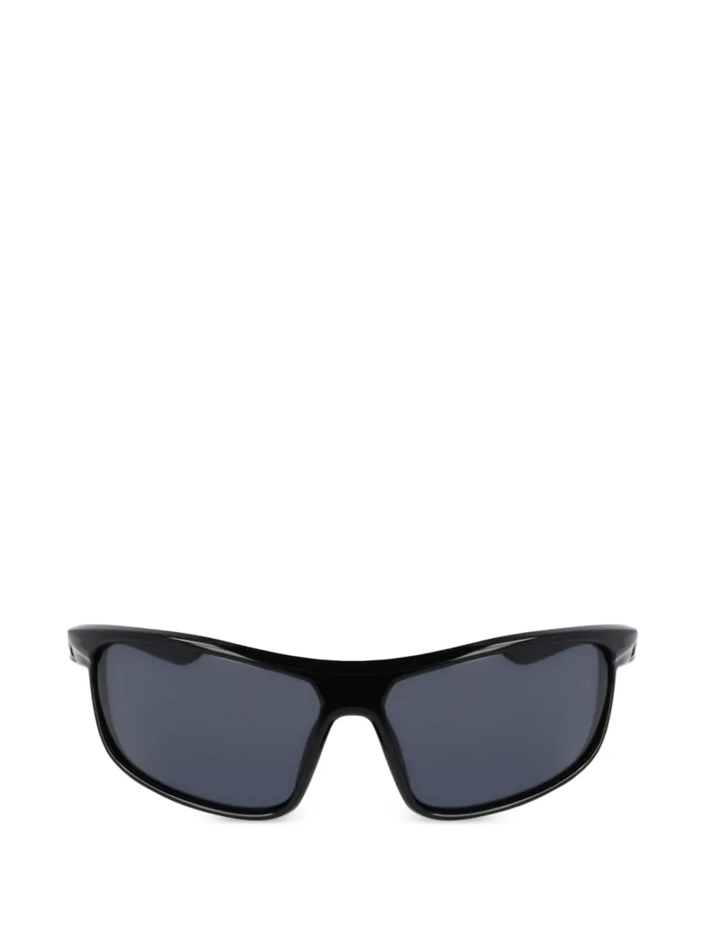 black rectangle frame tinted lenses Swoosh logo at the temple cut-out detailing textured arms integrated nose pads These glasses come with a protective case.