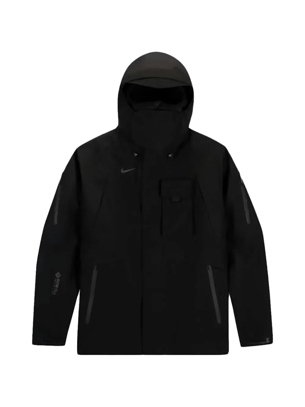 black drawstring hoodie high neck long sleeves zip fastening logo print