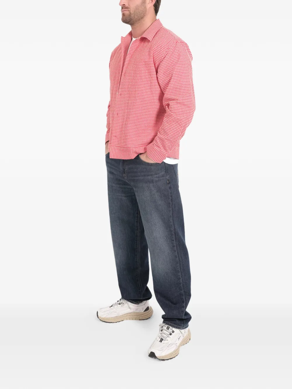 red/white checked pattern button fastening long sleeves classic collar buttoned cuffs