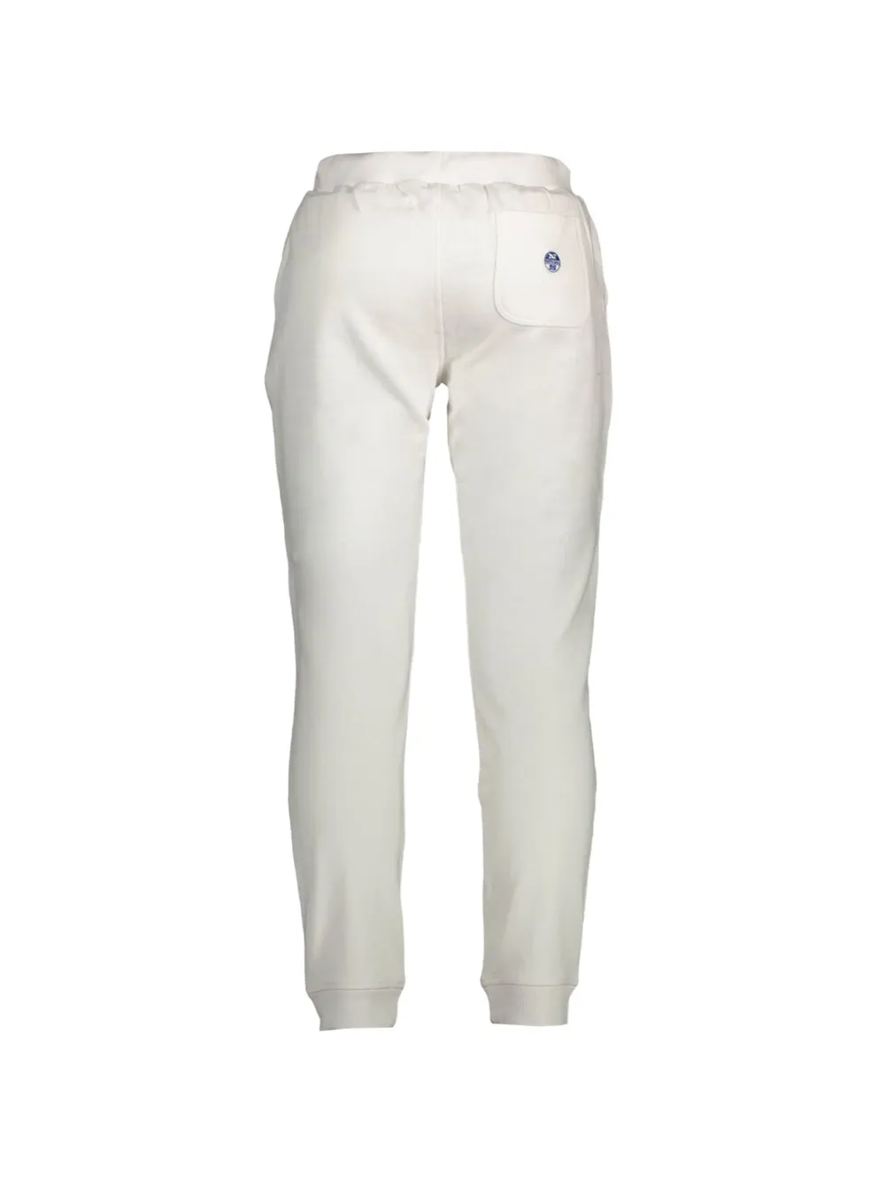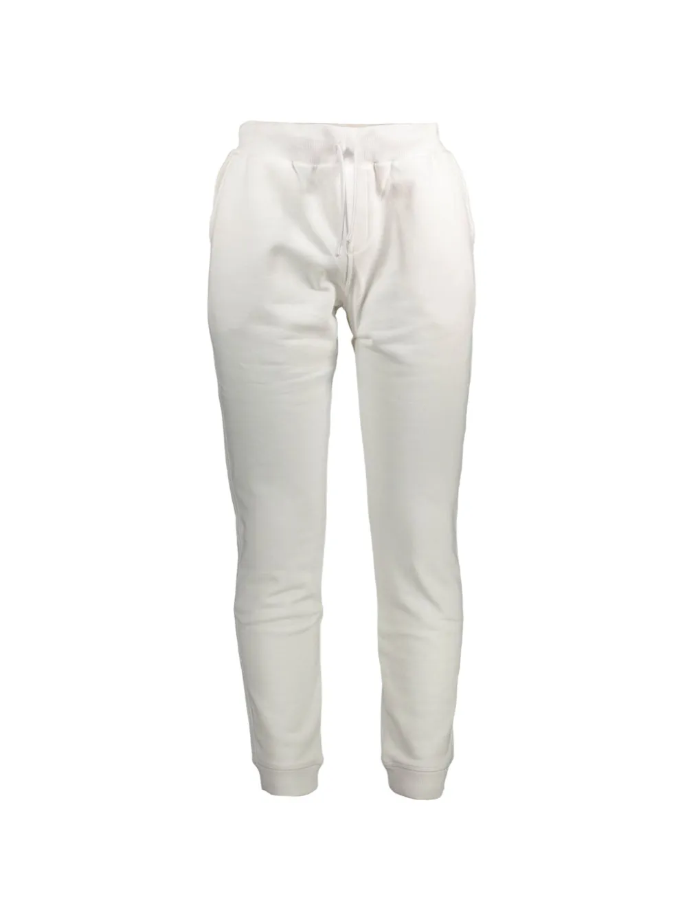 white elasticated drawstring waistband two side slit pockets rear patch pocket logo patch to the rear elasticated cuffs relaxed fit