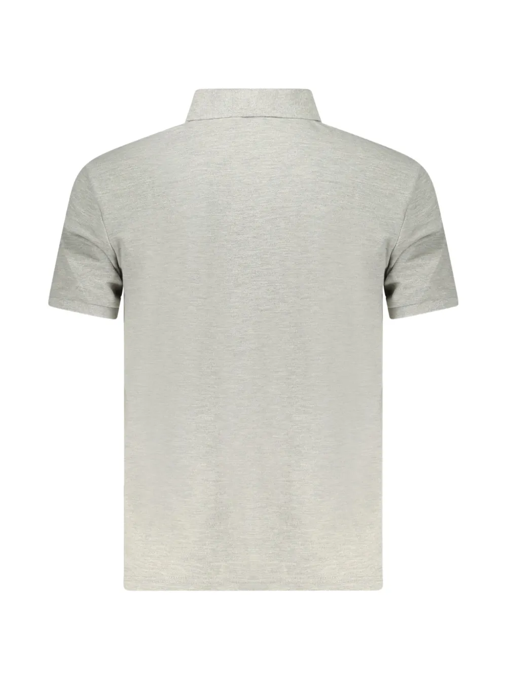 grey jersey texture polo collar front button placket short sleeves straight hem