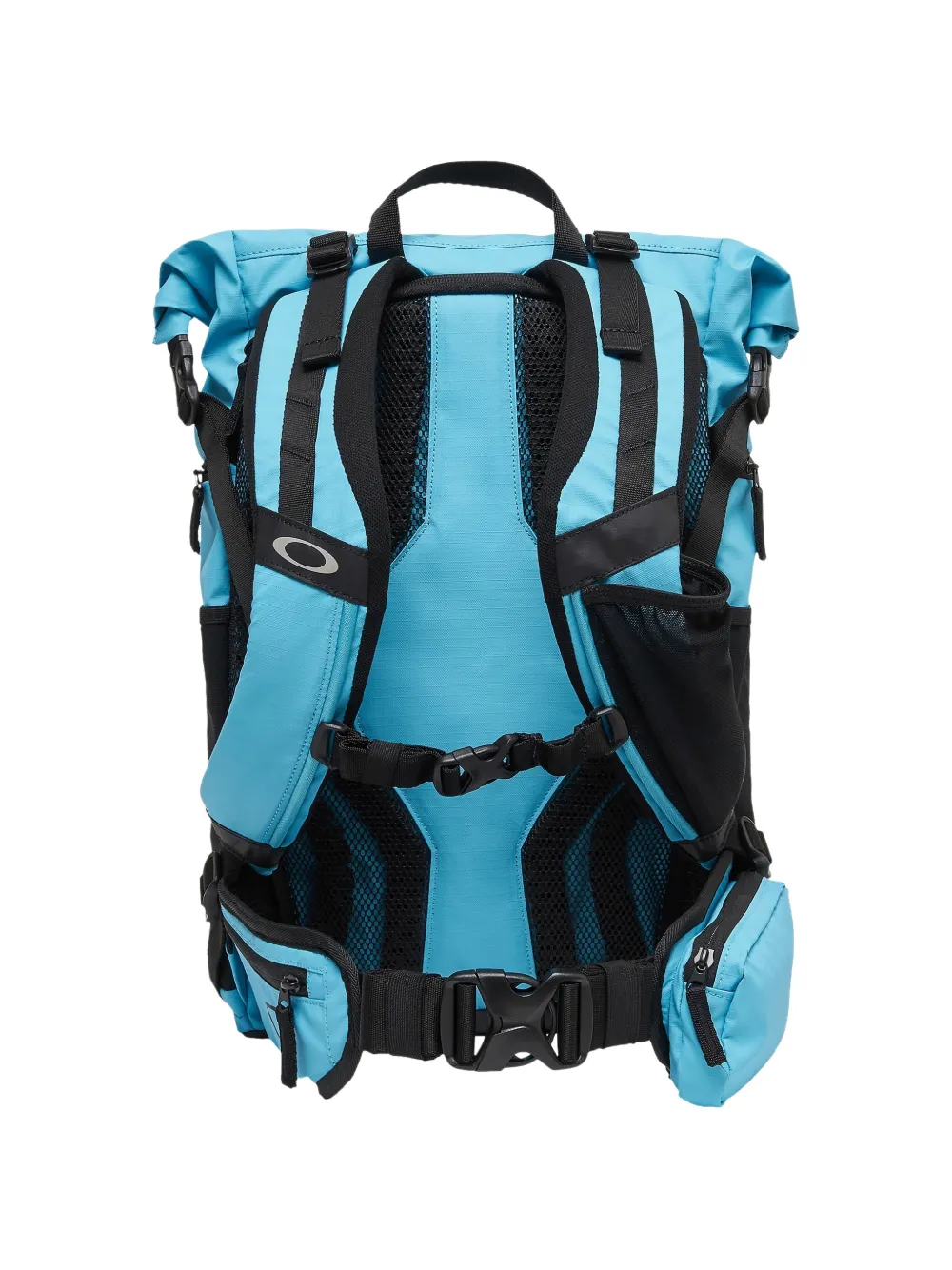 bright blue roll-top fastening buckle-fastening straps front zip-fastening pocket adjustable shoulder straps padded mesh back panel logo print to the front single top handle side slip pockets