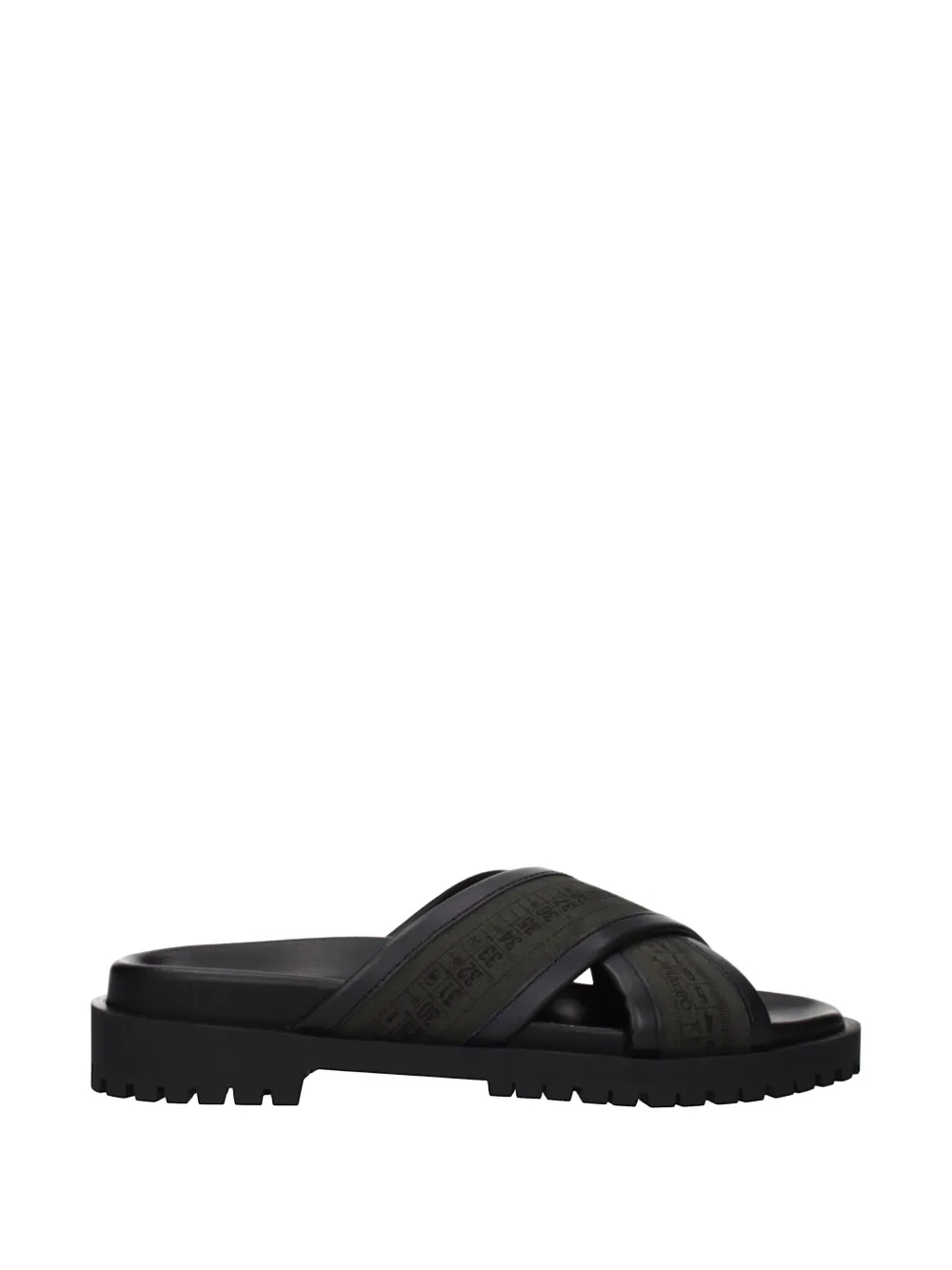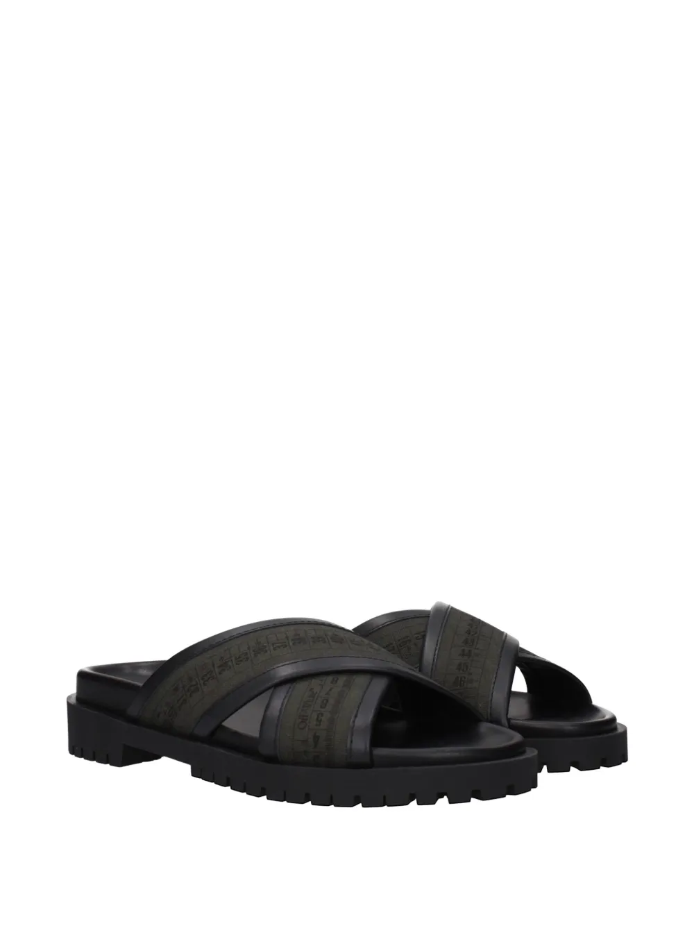 green Industrial belt detailing cross straps open toe slip-on style moulded footbed ridged rubber sole
