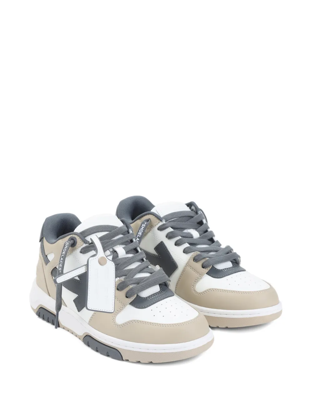 beige lace-up fastening panelled design flat rubber sole round toe
