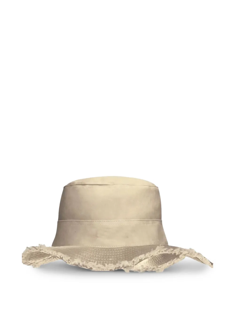 beige cotton logo embroidery frayed brim drawstring fastening