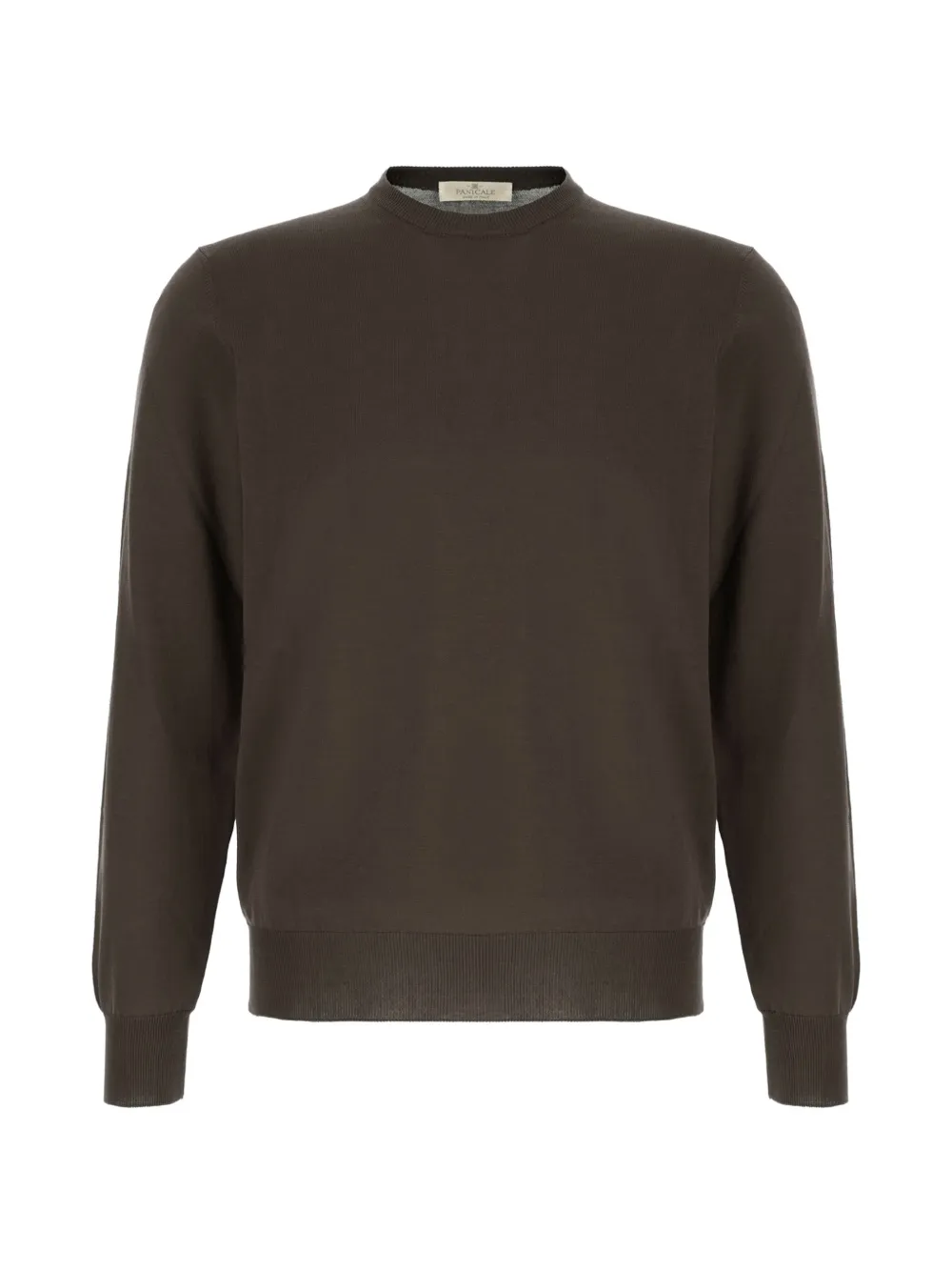 marrón cuello redondo dobladillo y puños de canalé
