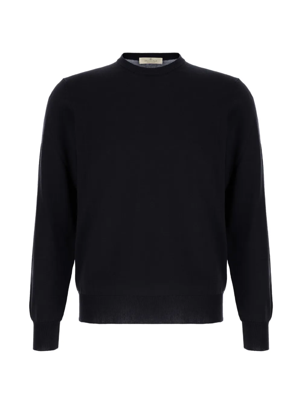 azul medianoche algodón punto de canalé cuello redondo manga larga dobladillo de canalé