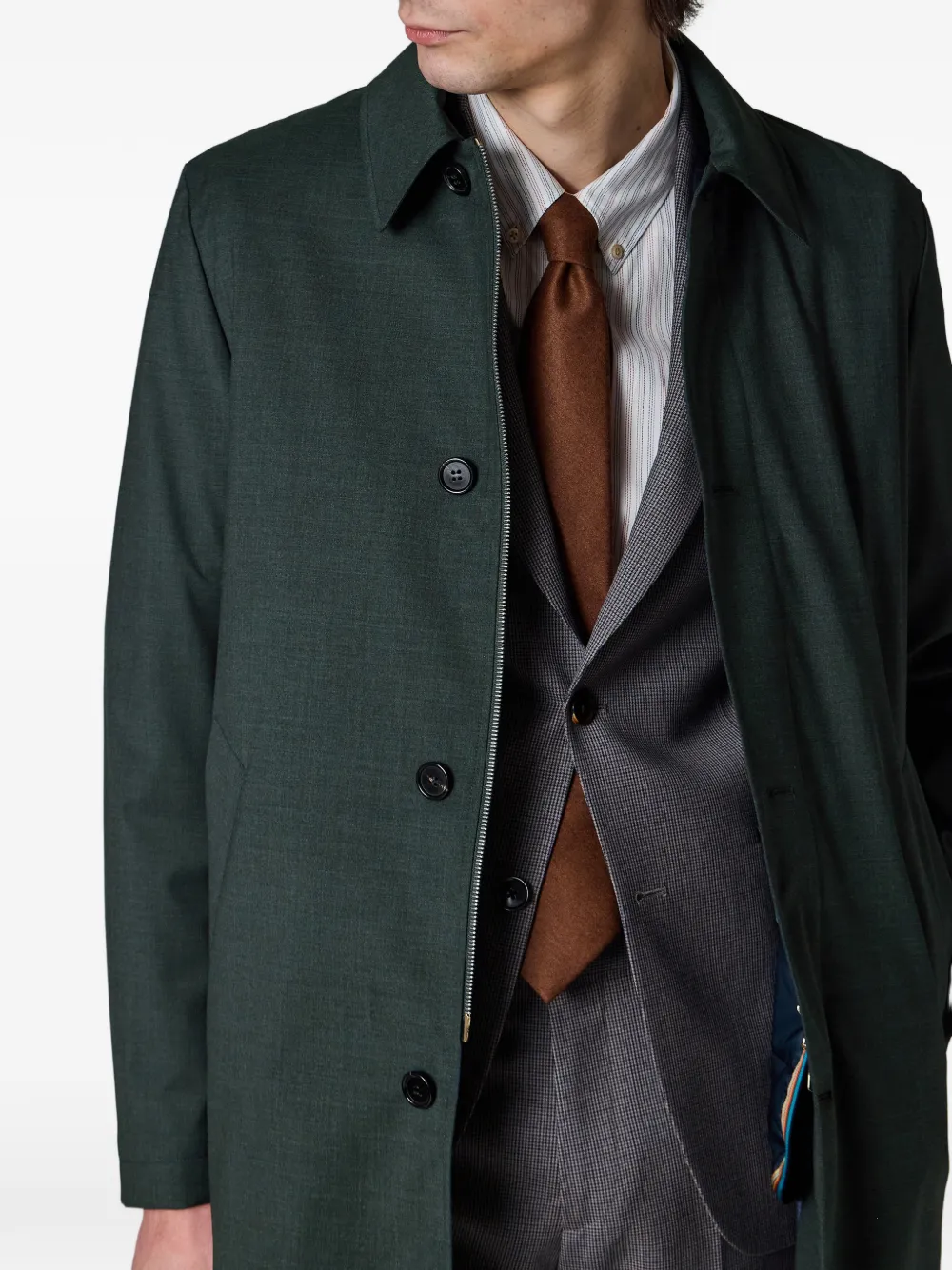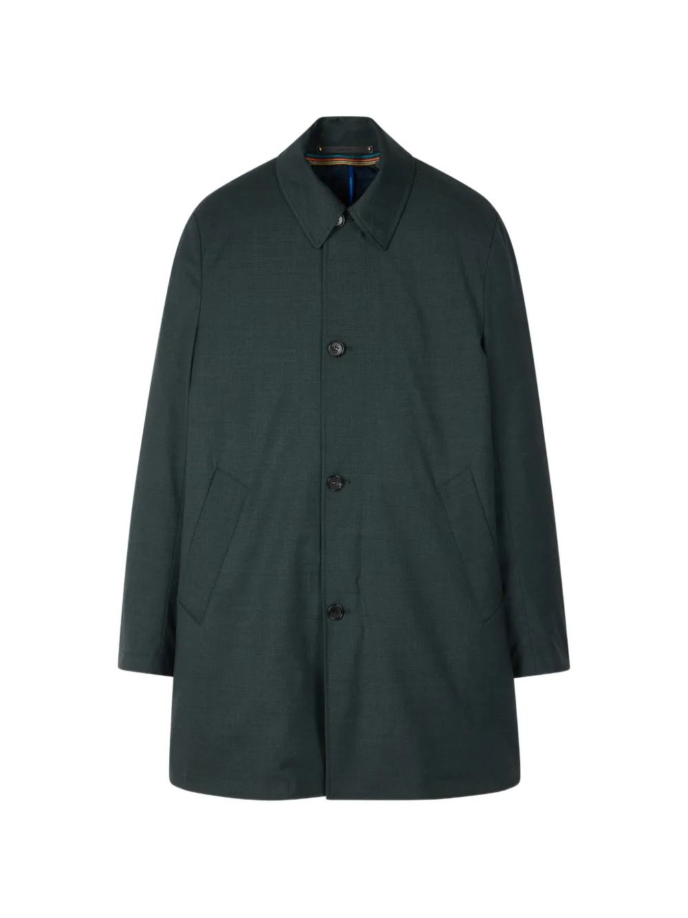 green button fastening pockets point collar long sleeves tonal stitching
