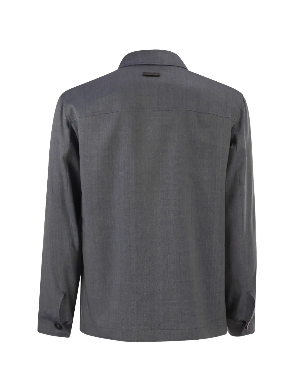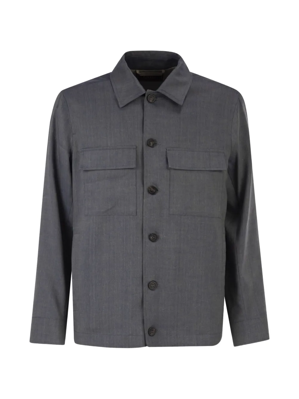 grey textured finish front button fastening shirt collar chest patch pockets buttoned cuffs