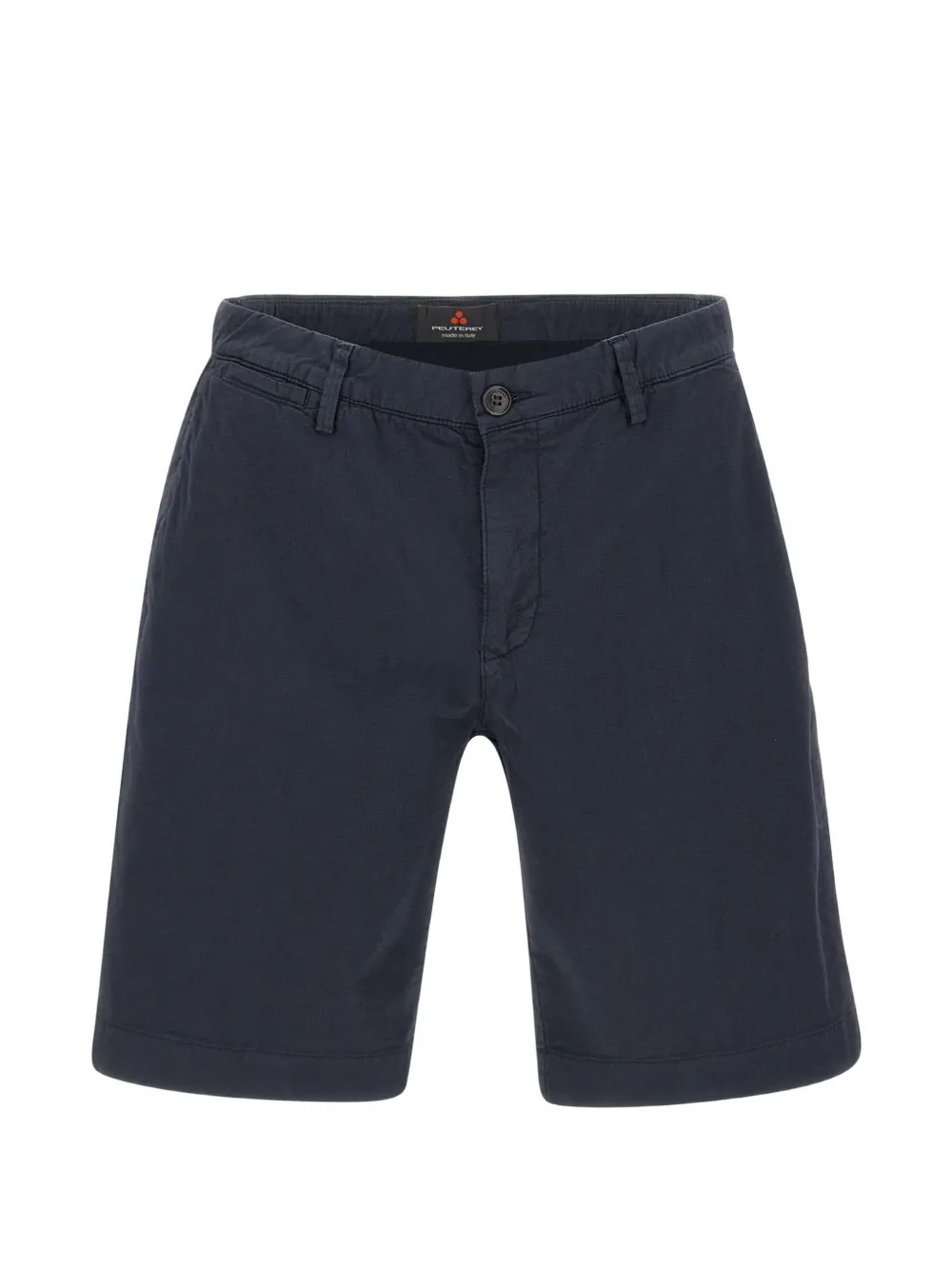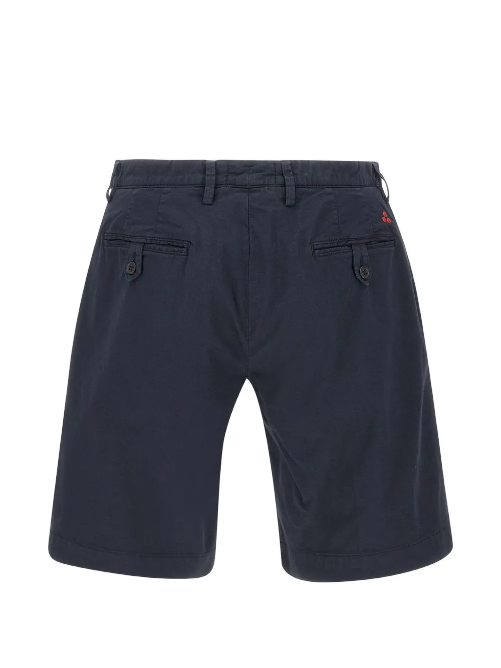 blue button closure belt loops back welt pockets front pockets embroidered logo