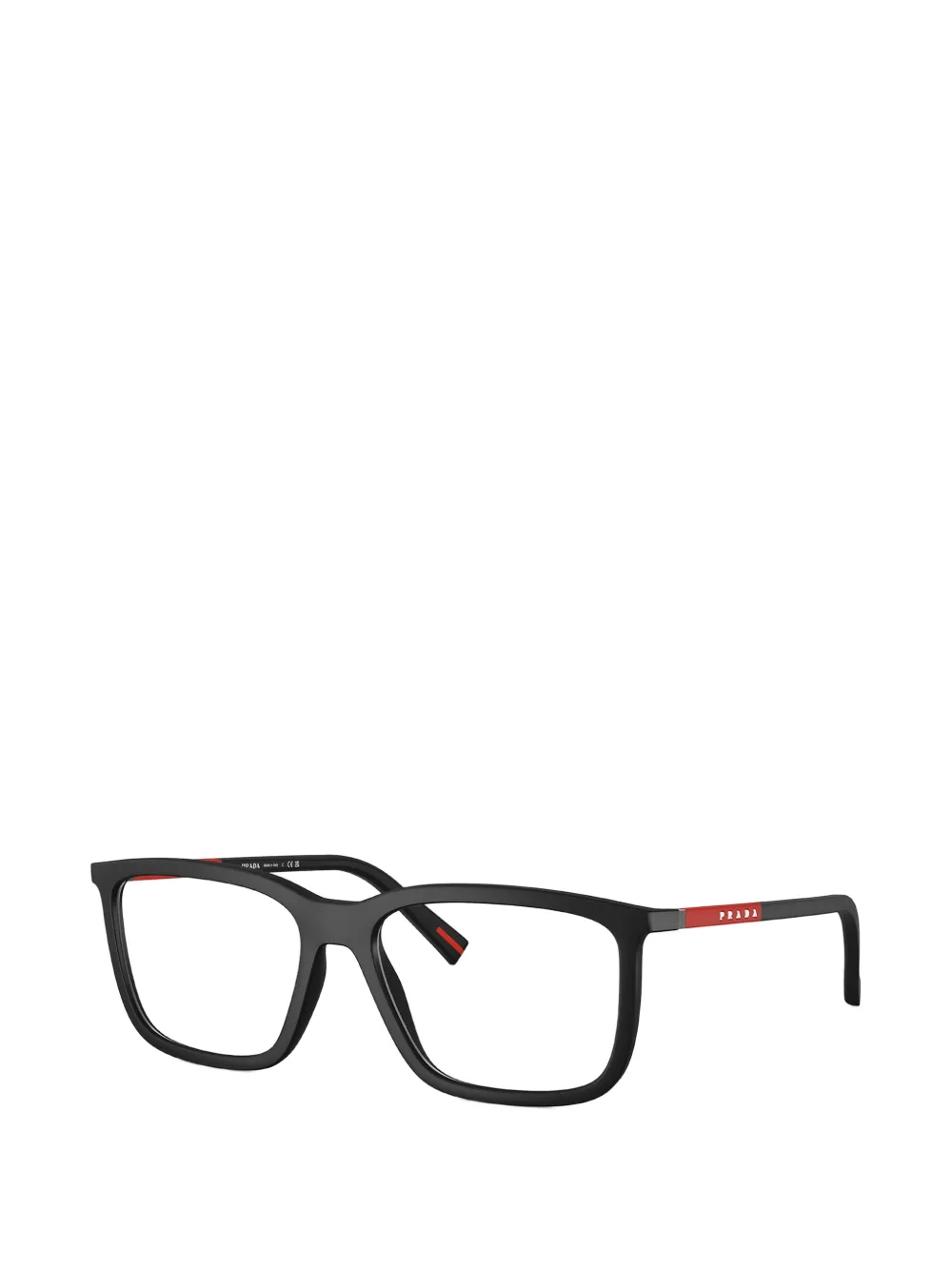 black rectangle frame stripe detail straight arms All glasses from FARFETCH are sold as non-prescription frames. These glasses come with a protective case.