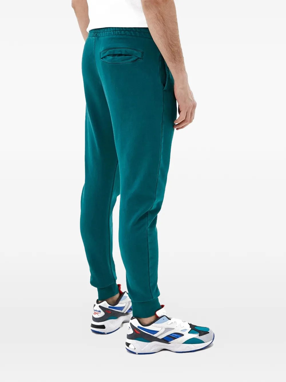 green elasticated waistband side slip pockets back patch pocket elasticated hem