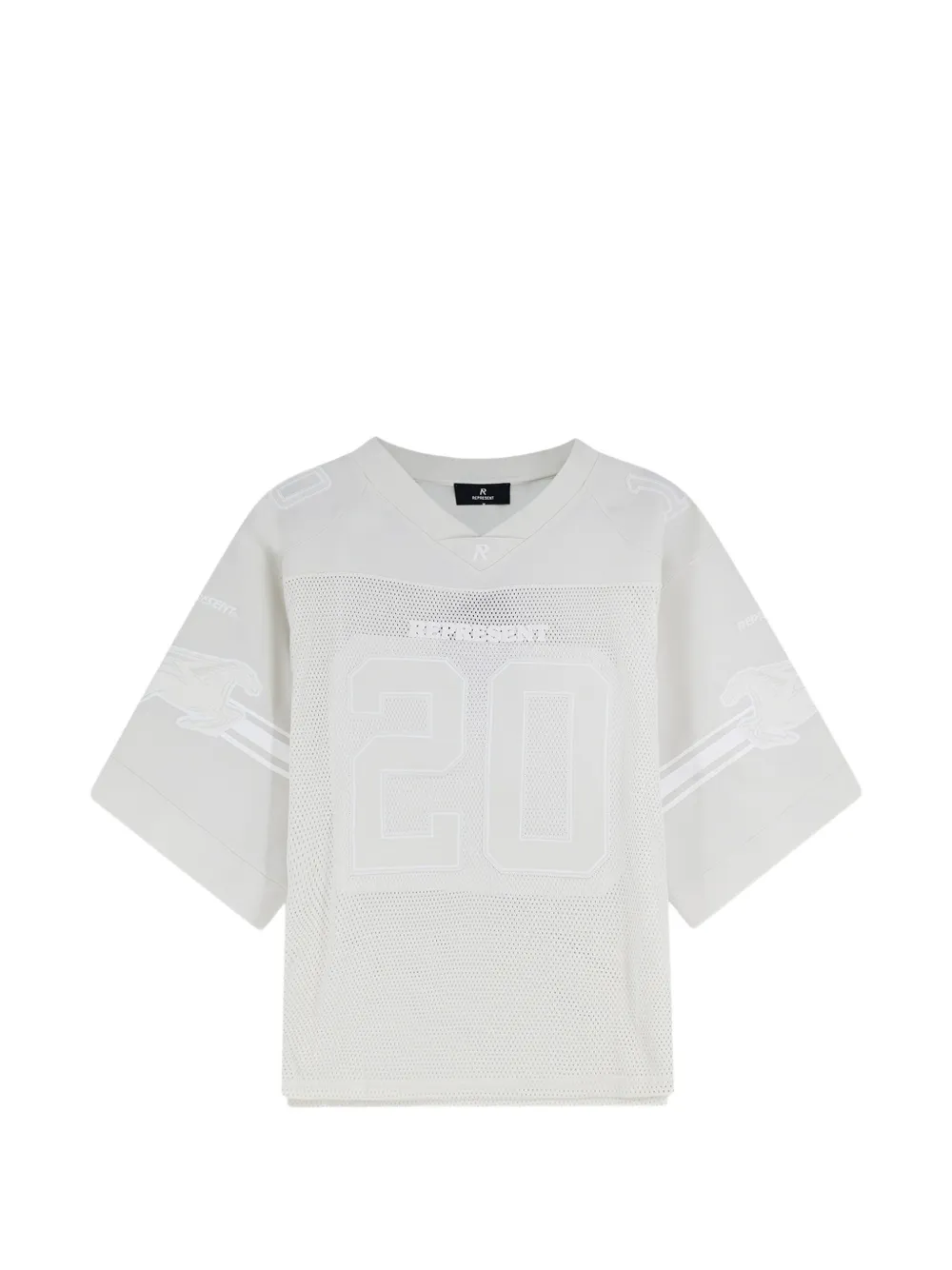 tiza detalle de número panel de malla cuello en V detalle de logo