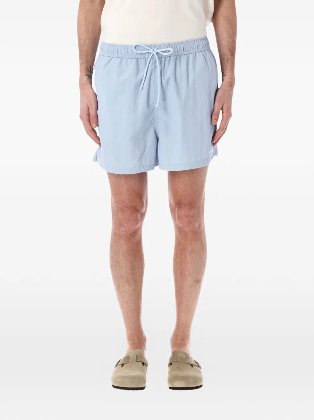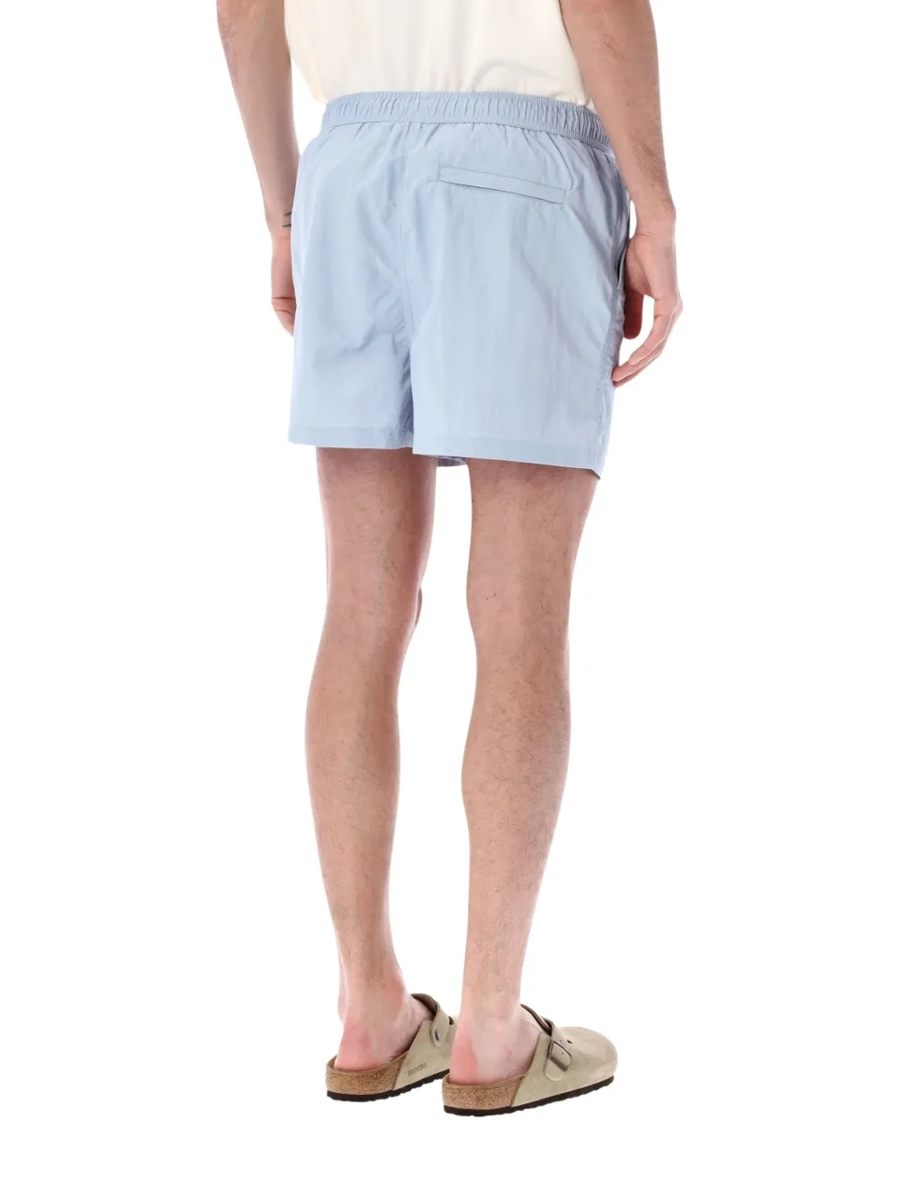 light blue drawstring fastening elasticated waistband side seam pockets back pocket Be mindful to try on swimwear over your own garments.