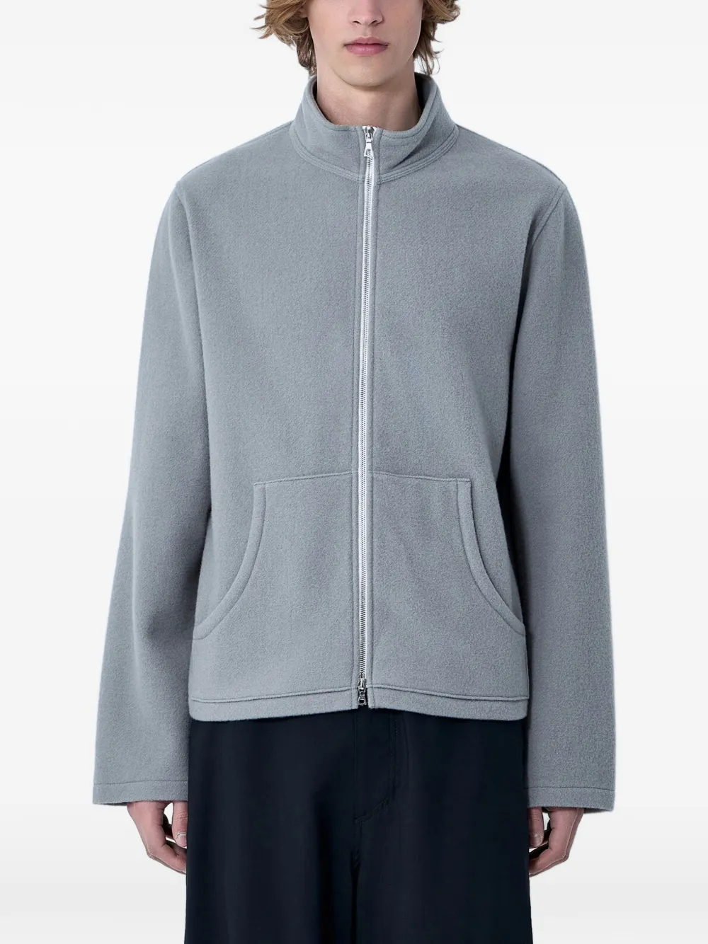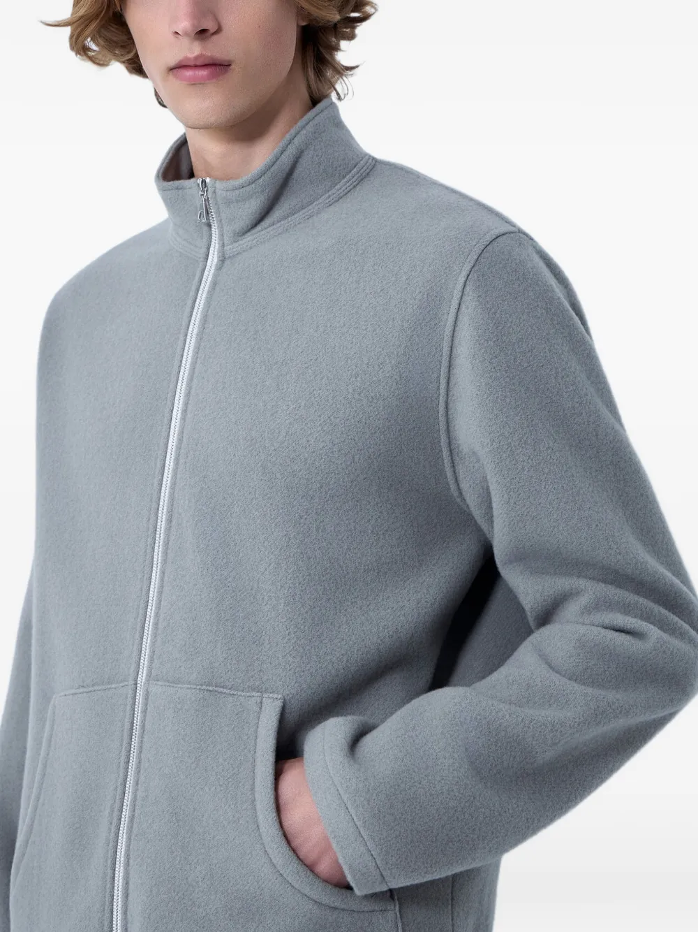 grey stand collar two front pockets full-zip fastening
