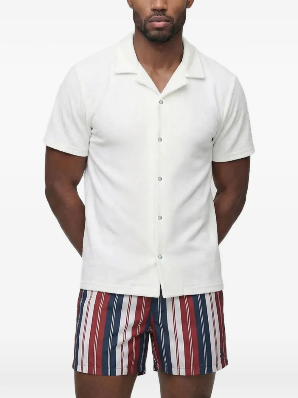 white cotton revere collar short sleeves button fastening tonal stitching