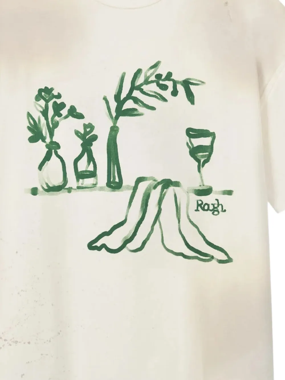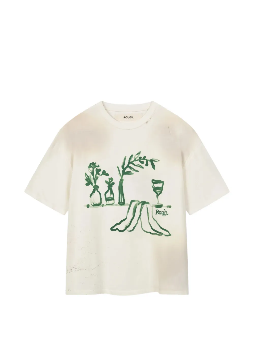 light beige graphic print crew neck short sleeves distressed finish
